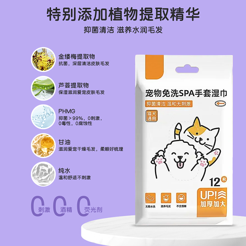 宠物免洗清洁手套猫咪湿巾专用狗狗干洗洗澡神器除臭猫狗通用好品