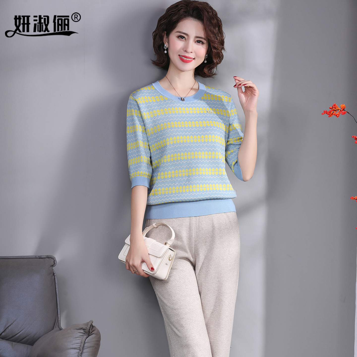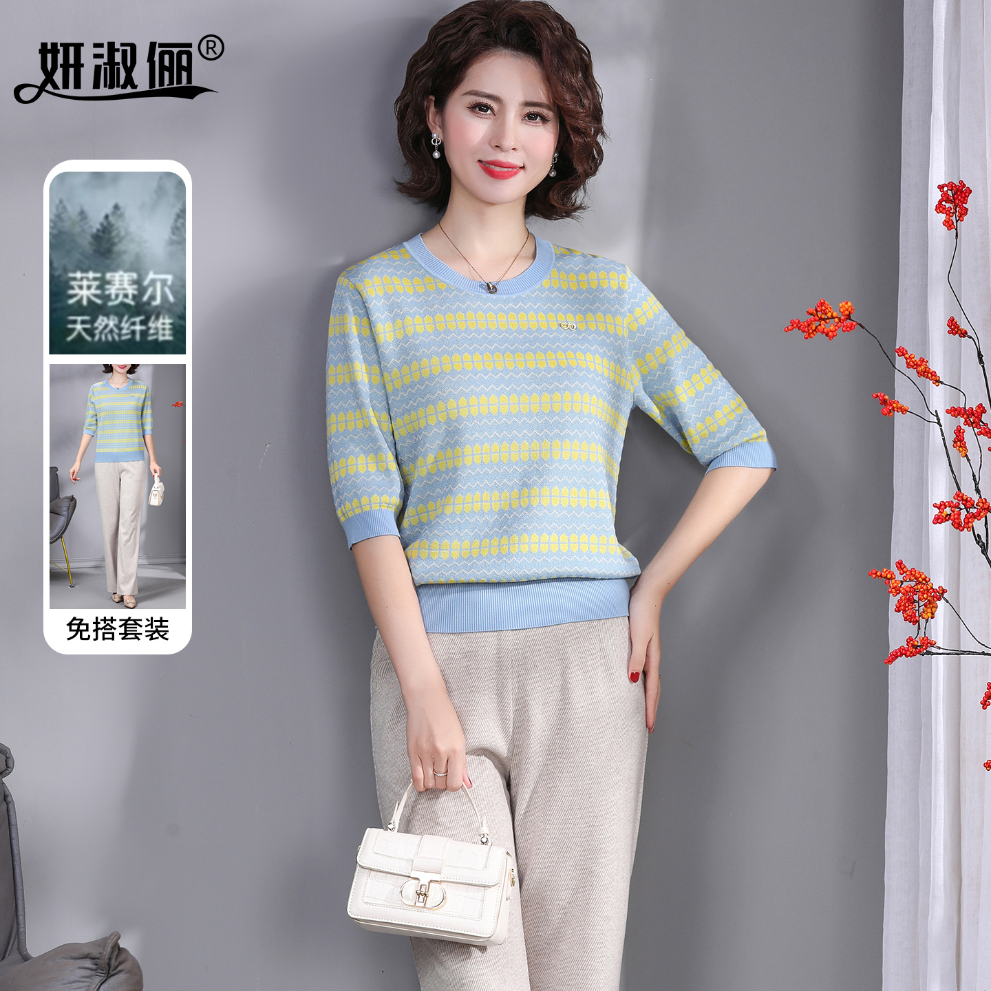 上衣阔太太套装 50岁妈妈2025新款 高级感莱赛尔针织衫 减龄正品 时尚