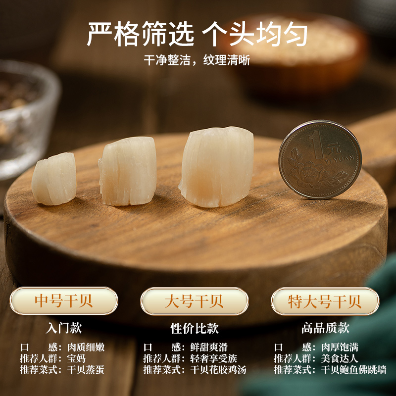 北海特产新晒瑶柱干贝野生元 贝瑶柱煲汤250g 贝无添加净重淡干元