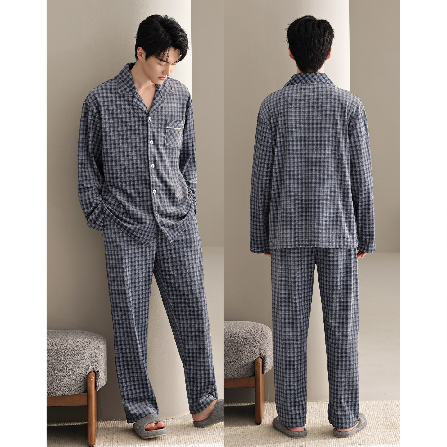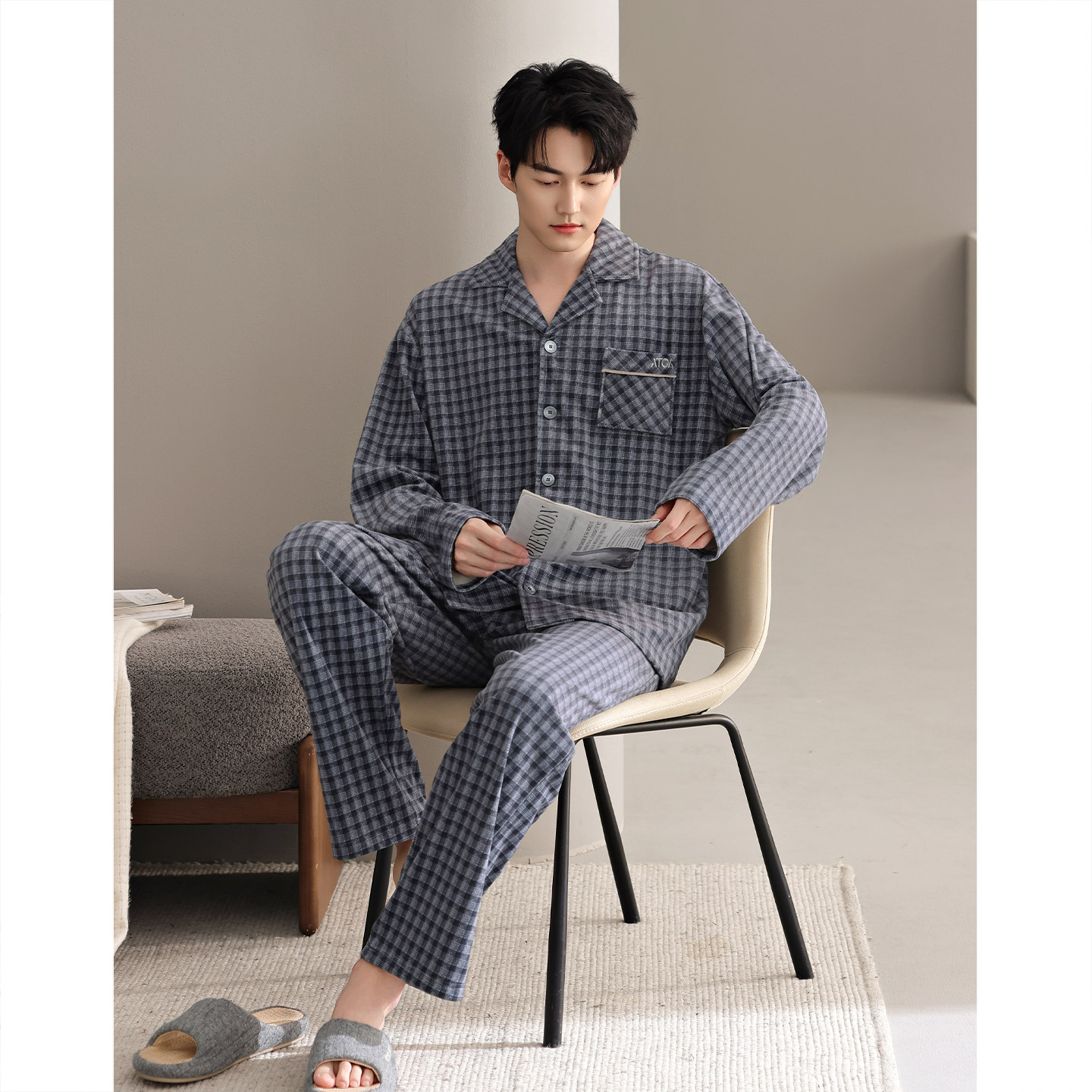 睡衣男款 全棉家居服套装 纯棉长袖 时尚 春秋2025年新款 都市丽人男士