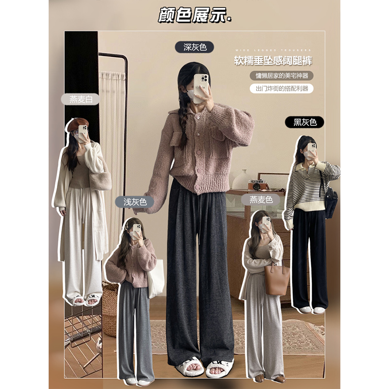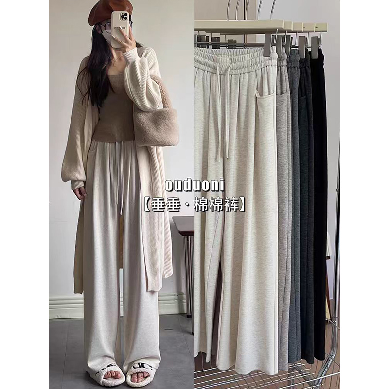 高级宽松bf慵懒垂感直筒加绒休闲阔腿裤 2025新款 子女春秋季 糯米裤