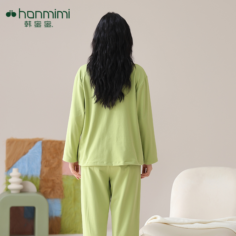 家居服加厚春秋冬 韩蜜蜜纯色睡衣女德绒长袖 开衫 套装 M0702 长裤