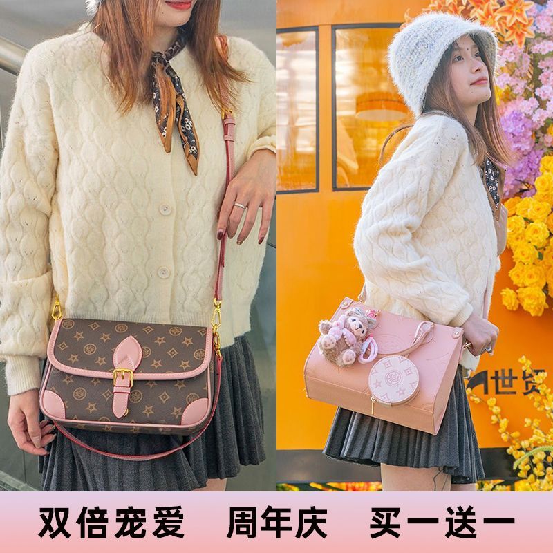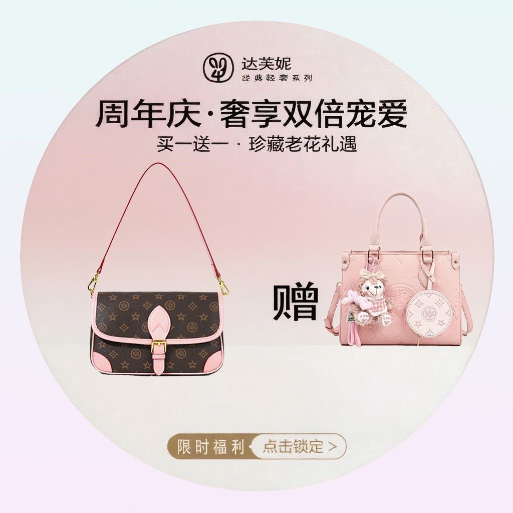 百搭时尚 达芙妮周年庆活动 斜跨包包甜美轻奢托特包 买一赠一