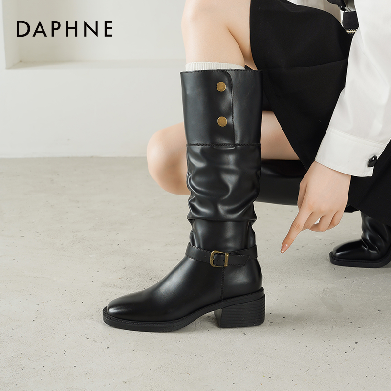 增高西部堆堆靴时尚 秋季 高筒骑士靴 2025爆款 达芙妮长筒靴子女款