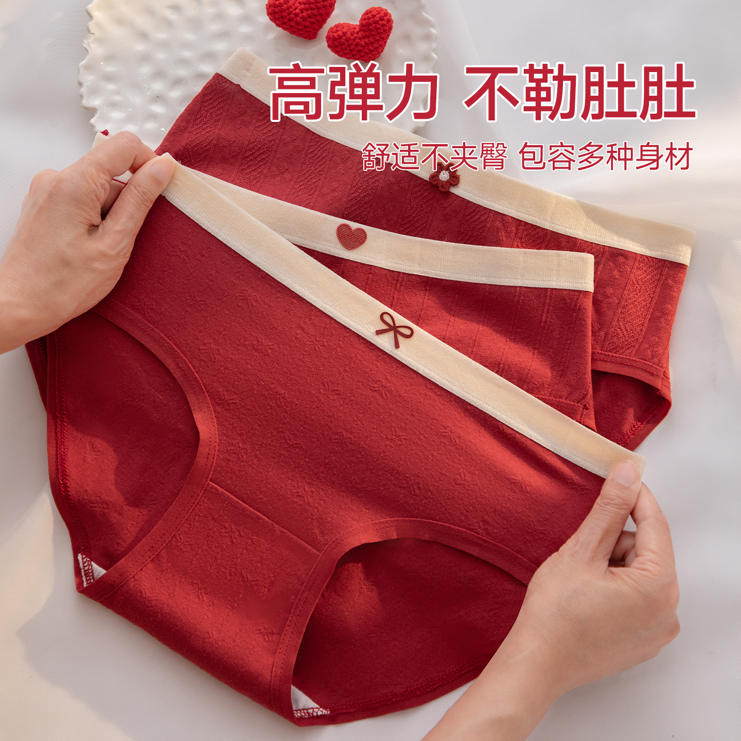 纯棉女士7a级抗菌中腰本命年结婚三角裤 芬腾红色内裤 女生2025新款
