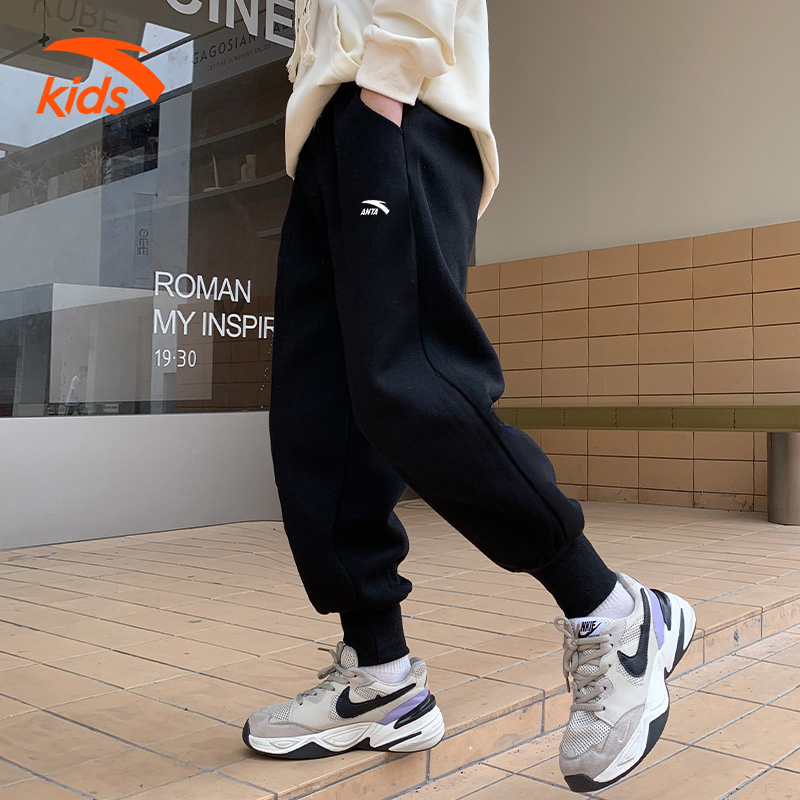 男大童舒适保暖潮流加绒卫裤 新款 2025秋冬季 安踏儿童针织运动长裤