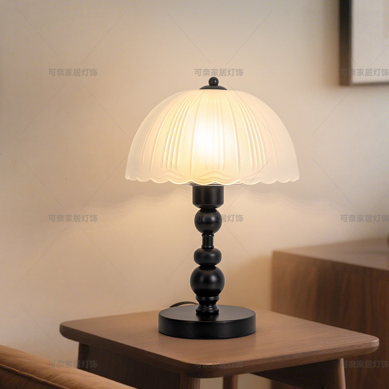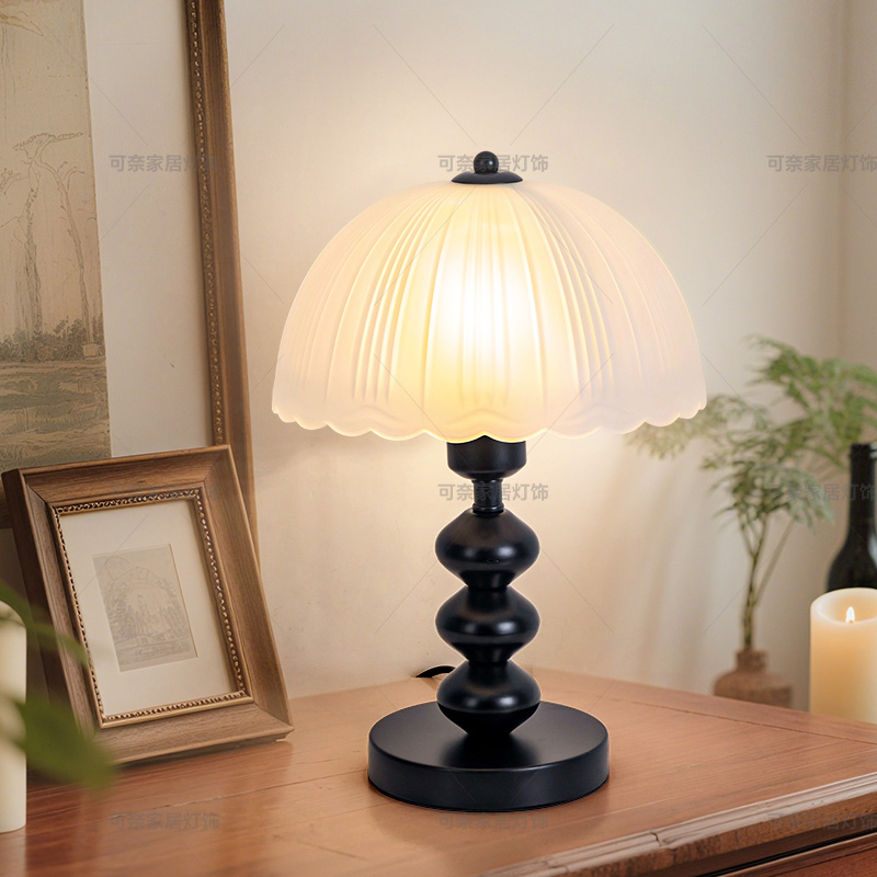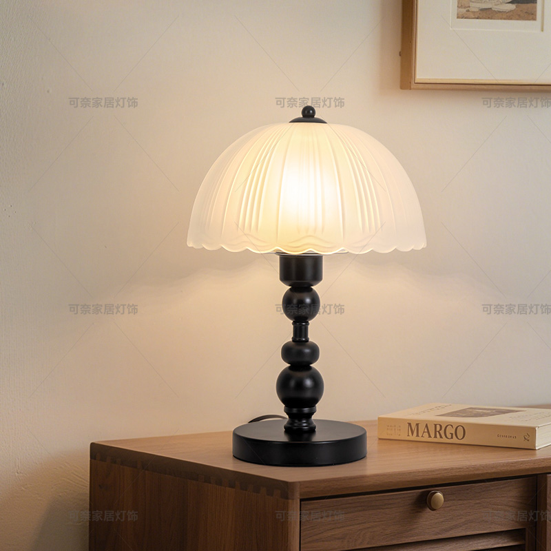 中古侘寂风台灯床头灯美式 黑色小夜灯 复古卧室书房温馨罗马柱法式