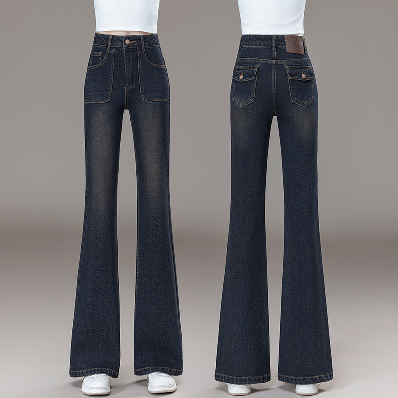 马蹄喇叭裤 时髦复古高腰微喇牛仔裤 高腰显瘦修身 2025新款 子 女秋季