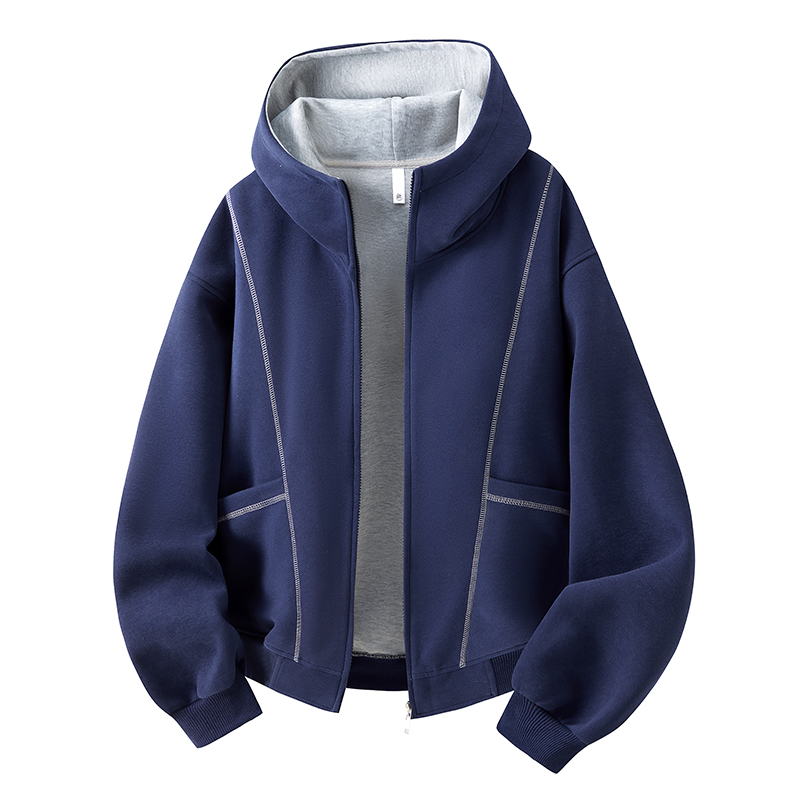 迈特优潮牌美式 外套明辑线廓形空气层卫衣男 重磅350g连帽拉链开衫