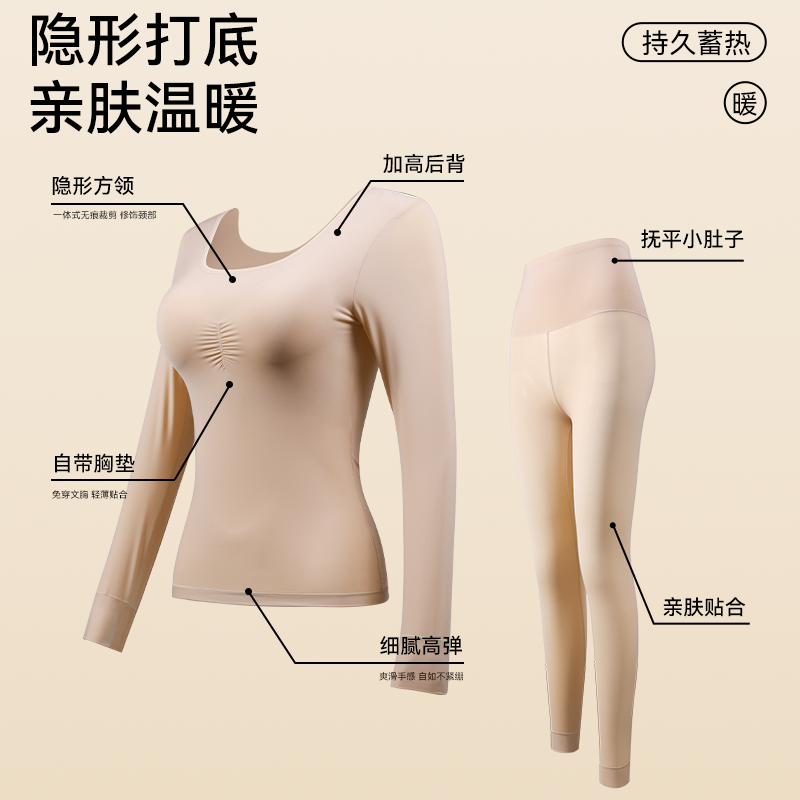 套装 琥珀流光美肤衣自带胸垫隐形无痕保暖秋衣秋裤 女 新款 古今秋季