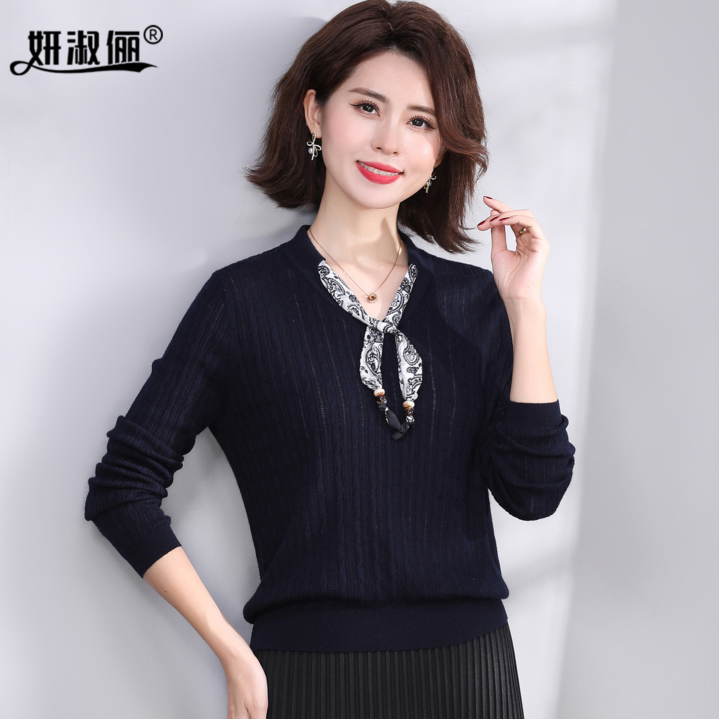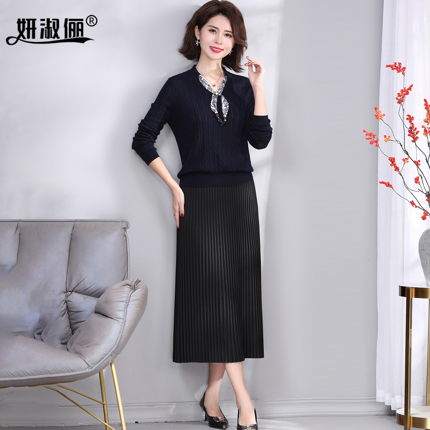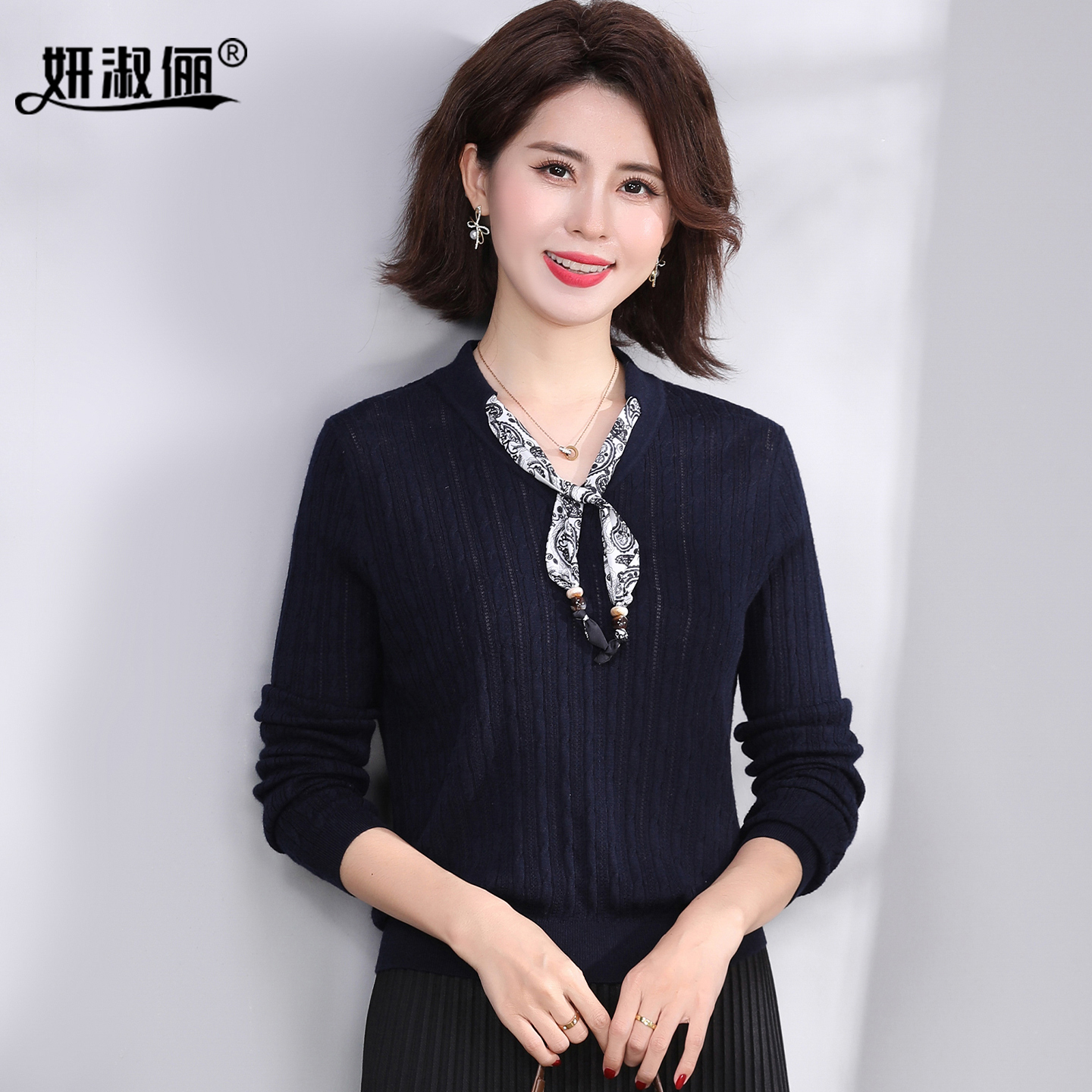 裙高档洋气50岁妈妈羊毛针织衫 秋季 系丝巾女2025套装 上衣毛衫 新款