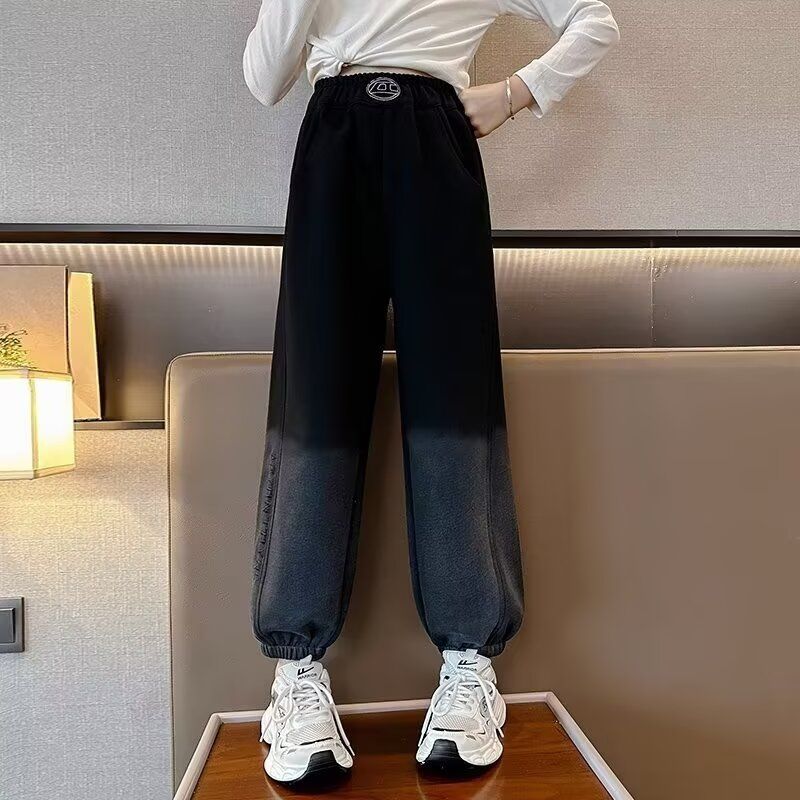 宽松垂坠感显瘦休闲阔腿长卫裤 窄版 2025新款 子女春秋季 直筒运动裤