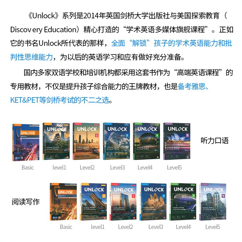 进口新版 剑桥初中英语教材Unlock教材12345级 listening reading 原版 speaking writing听力口语阅读写作剑桥少儿英语教材 自营