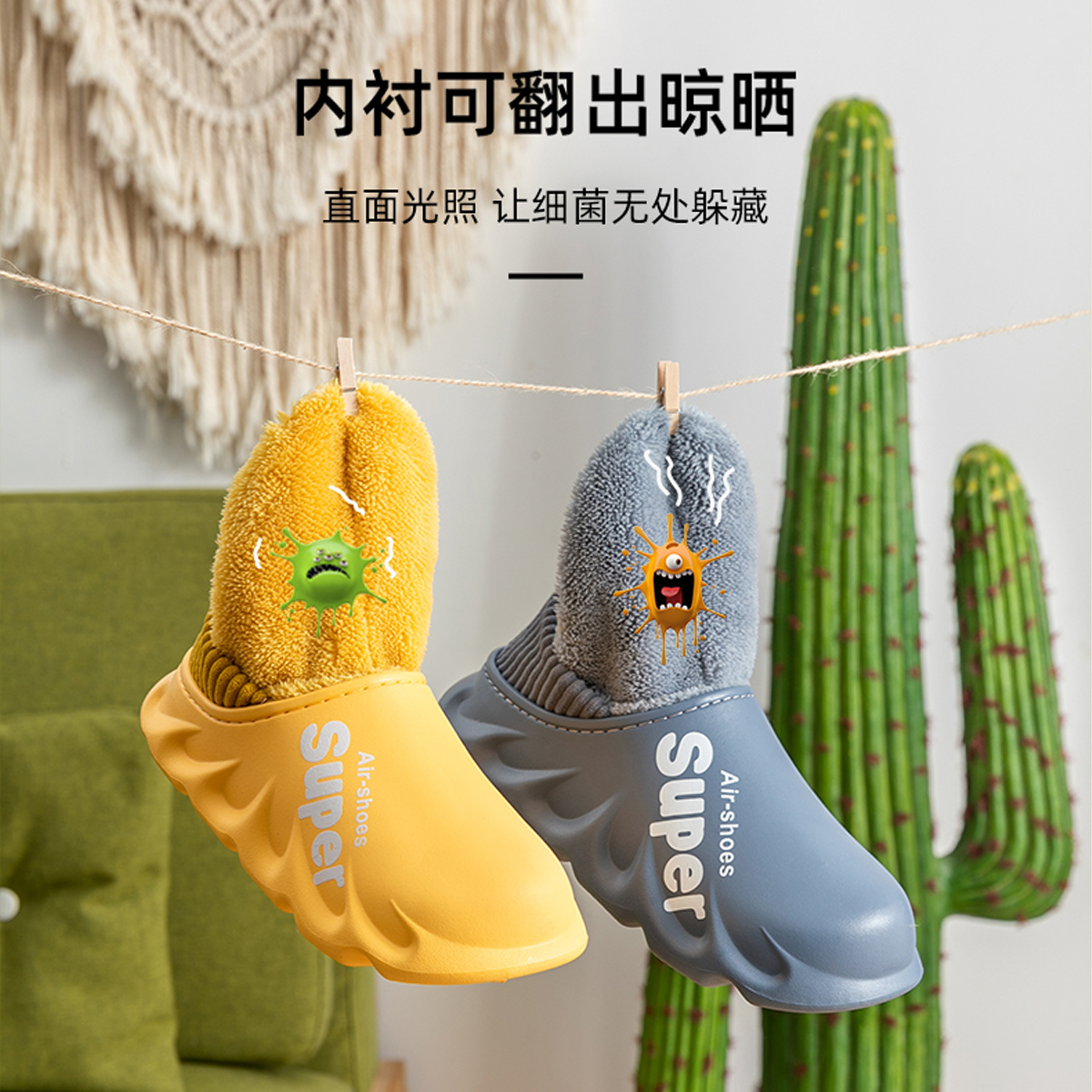 室内家居厚底防滑加绒保暖包跟棉鞋 秋冬季 男 女款 洁丽雅防水棉拖鞋