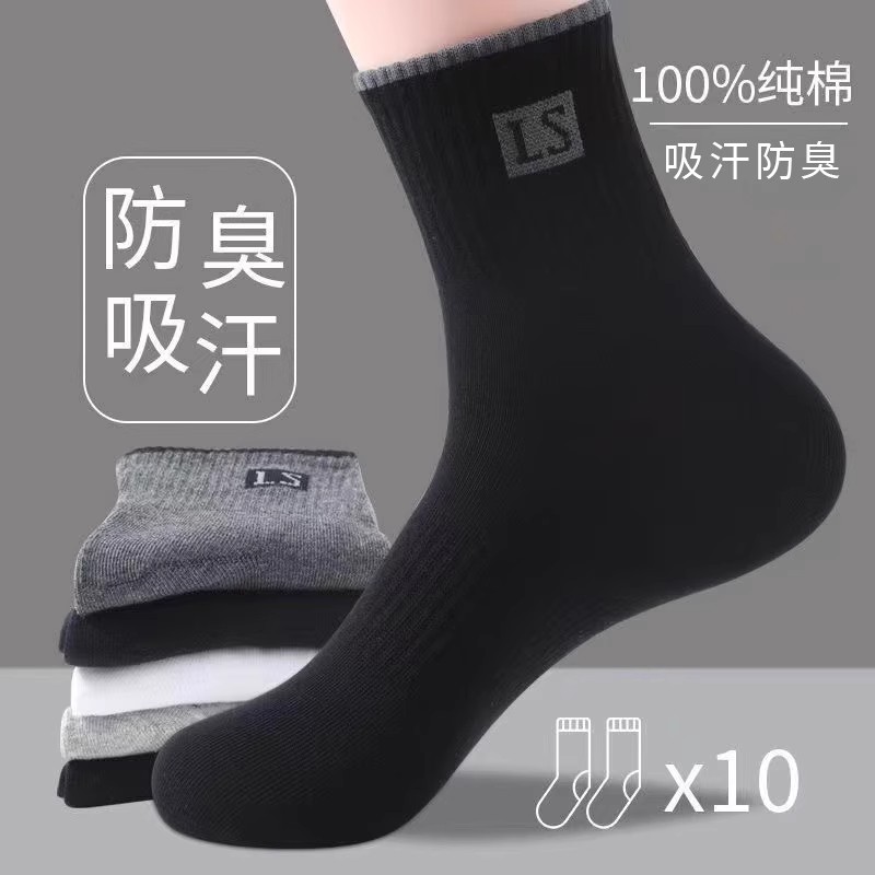 防臭袜子男款 运动长袜 纯棉中筒袜春秋吸汗抗起球抗菌百搭全棉男士