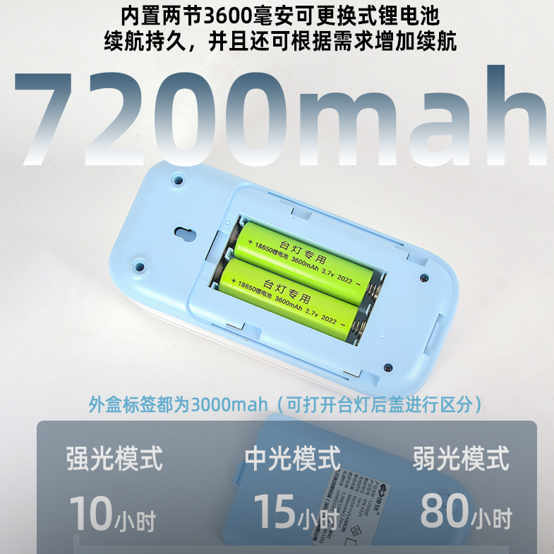 康铭可折叠充电台灯大容量超长续航学生宿舍护眼学习专用充插两用