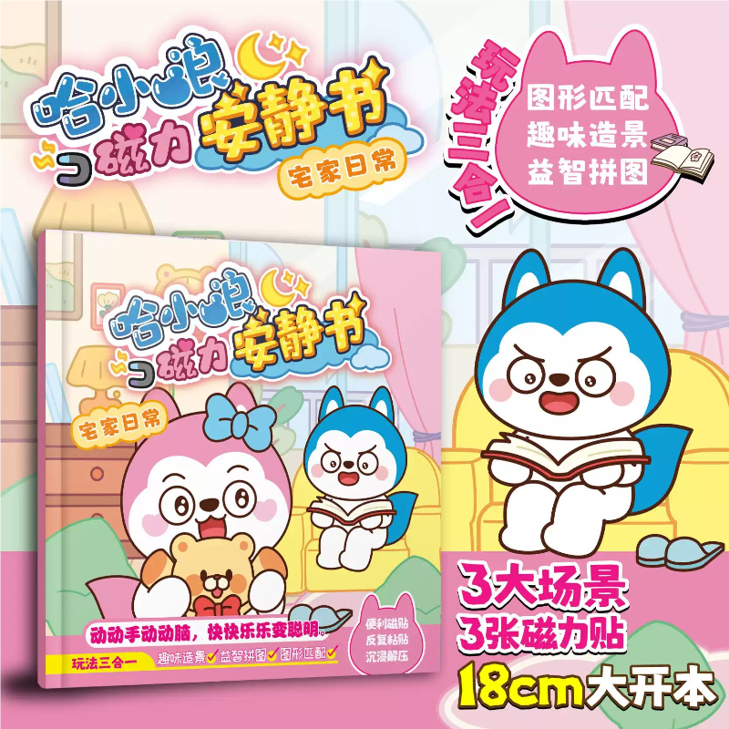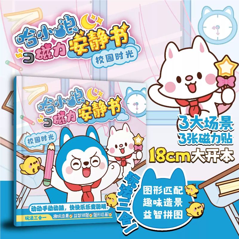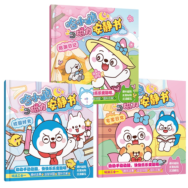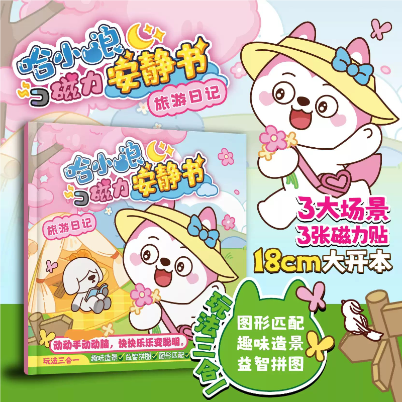 亲子趣味互动益智成长玩具书正版 哈小浪磁力安静书 提高儿童阅读理解能力感知力 益智进阶玩法三合一 旅行日记校园时光宅家日常