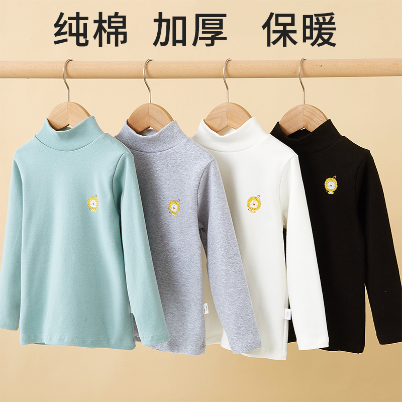 T恤半高领上衣 长袖 女童纯棉打底衫 儿童圆领a类内搭衣服小男孩童装