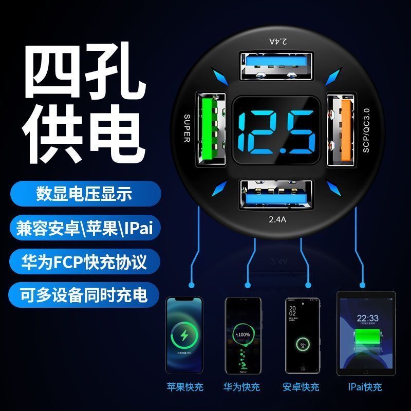 车载充电器手机超级快充头点烟器一拖二转换插头车充插座汽车接口