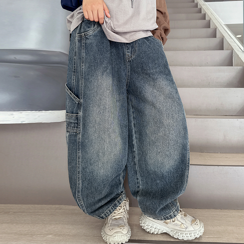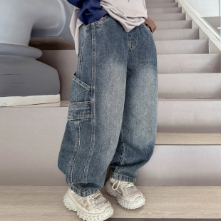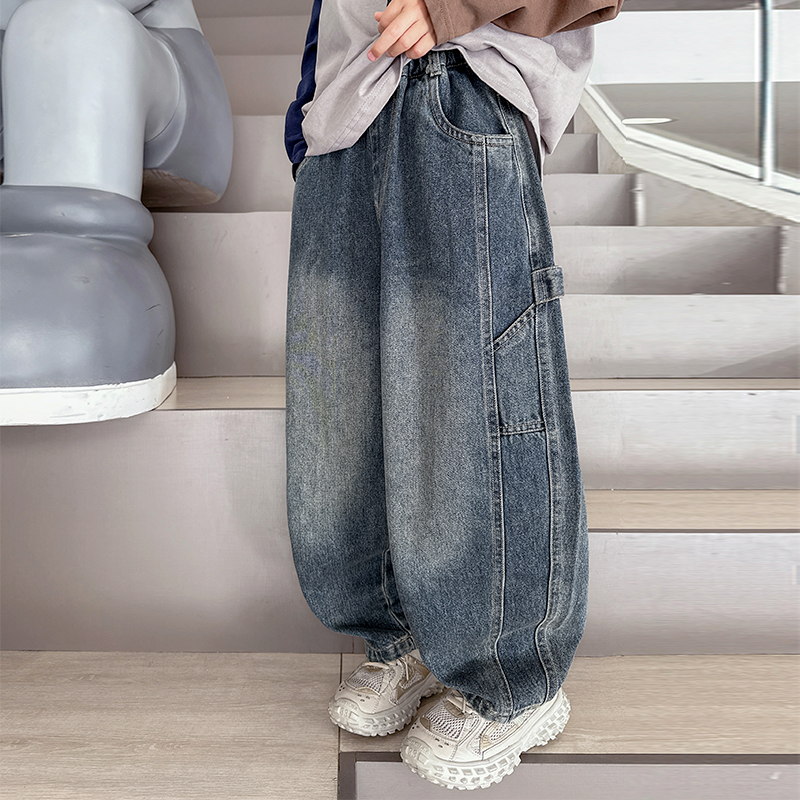 2025秋装 男孩秋季 新款 复古宽松长裤 运动直筒 儿童春秋款 男童牛仔裤