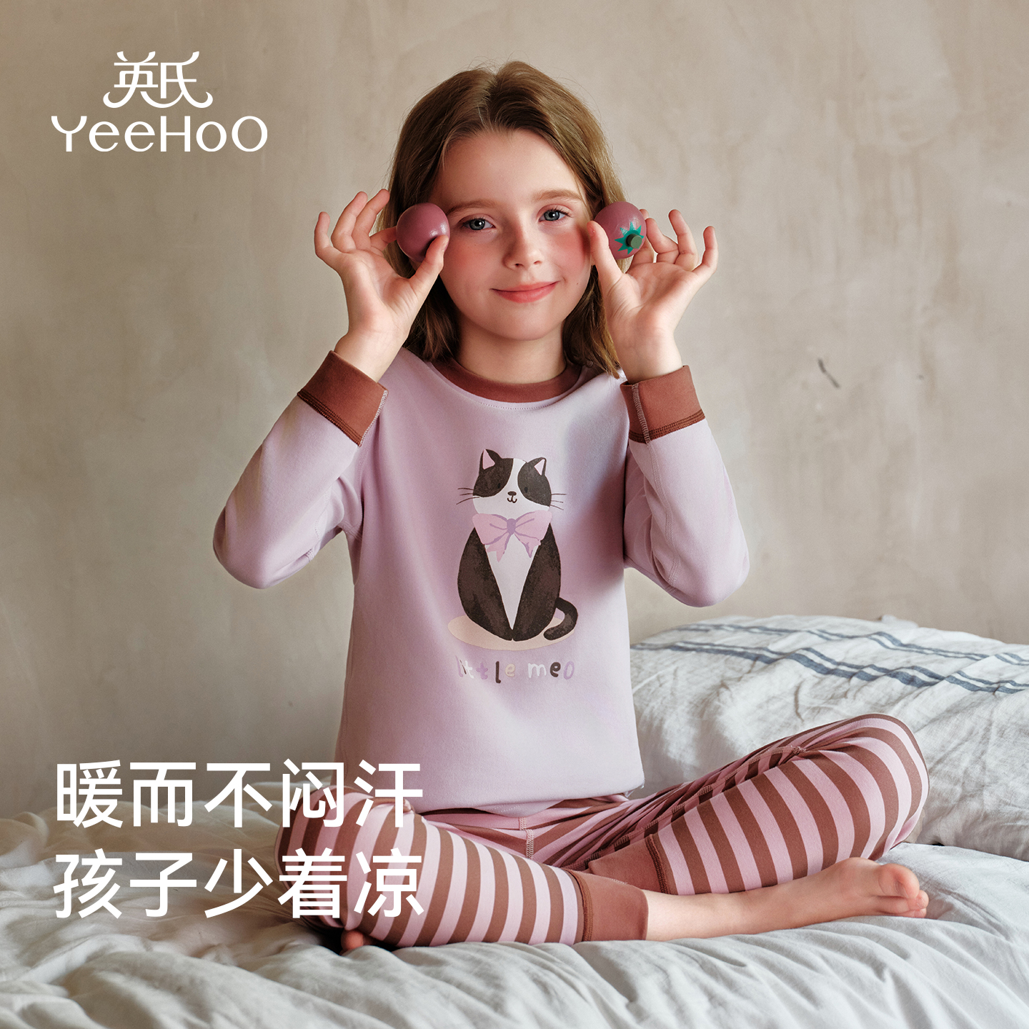 保暖内衣冬 女初高中学生大童青少年纯棉毛衫 少女撞色秋衣秋裤 套装