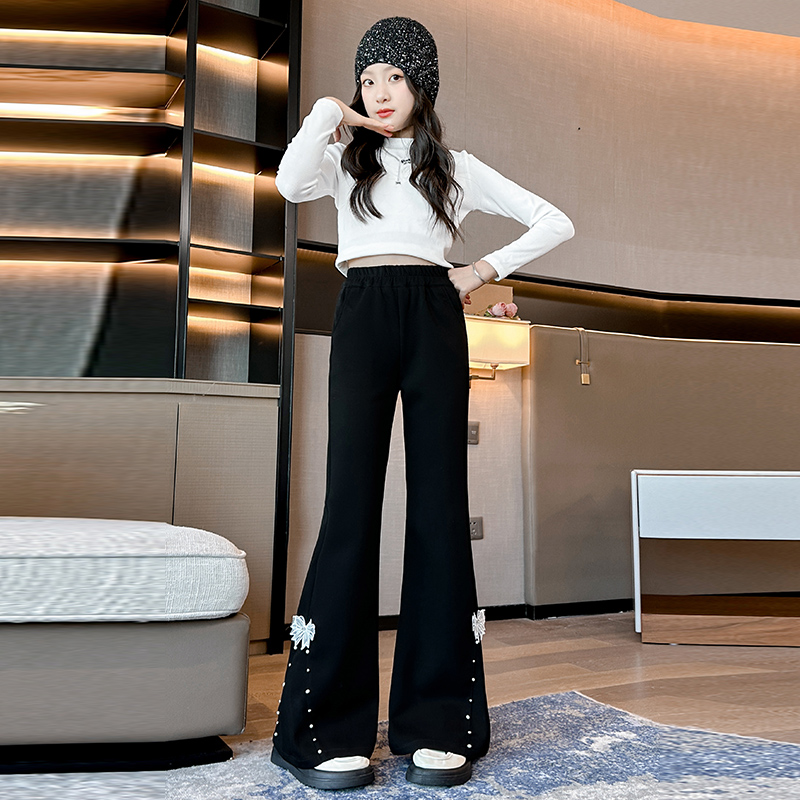 子春秋款 长裤 2025新款 儿童弹力修身 黑色 外穿休闲裤 女童微喇叭裤