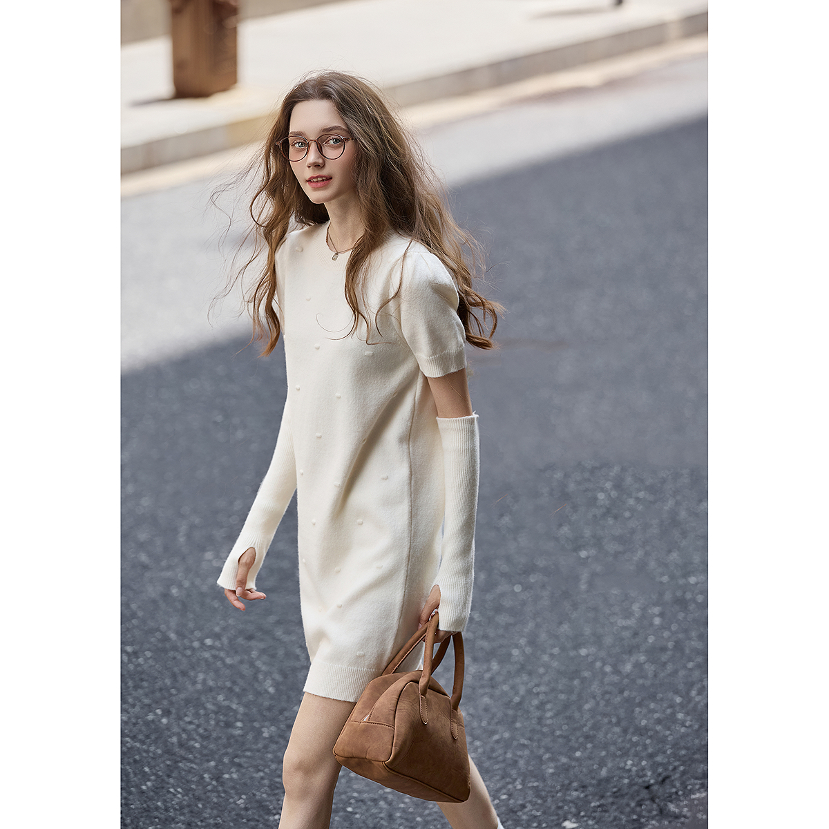 长袖 优雅显瘦重工银丝圆领修身 女连衣裙 设计感时尚 BCBG25早秋新款