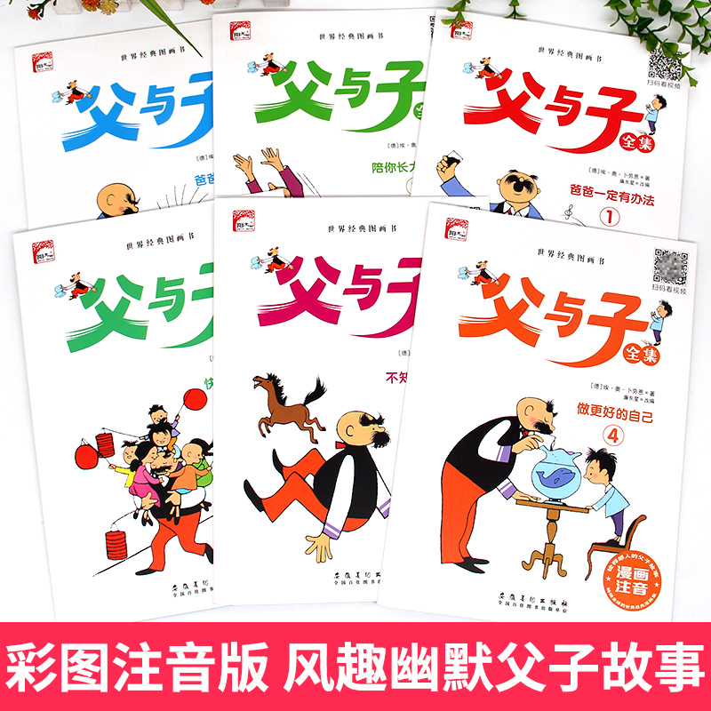 一年级阅读课外儿童绘本连环画卜劳恩著幽默漫画书带拼音看图讲故事写作文 正版 父与子全集二年级必读课外书彩色注音版 漫画版