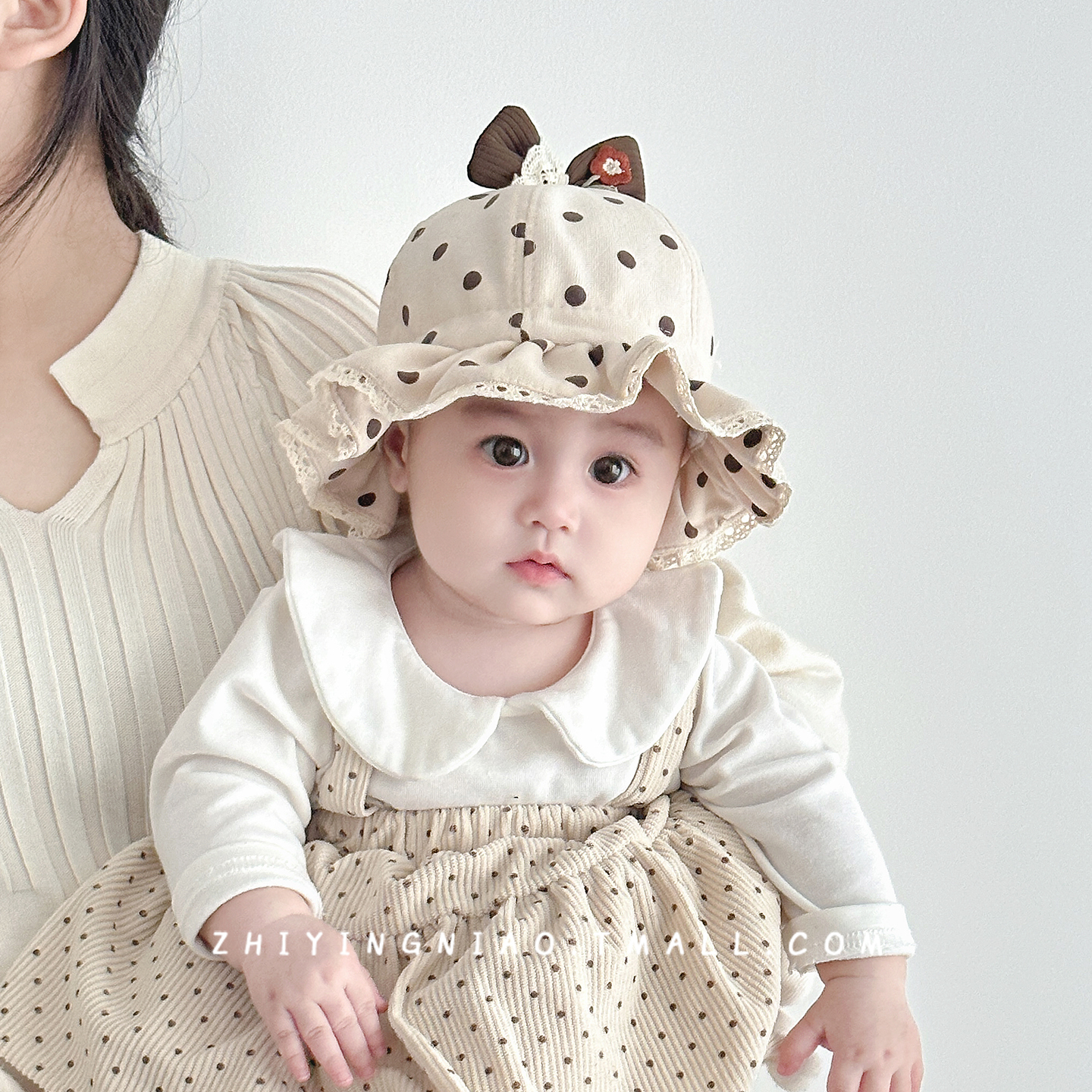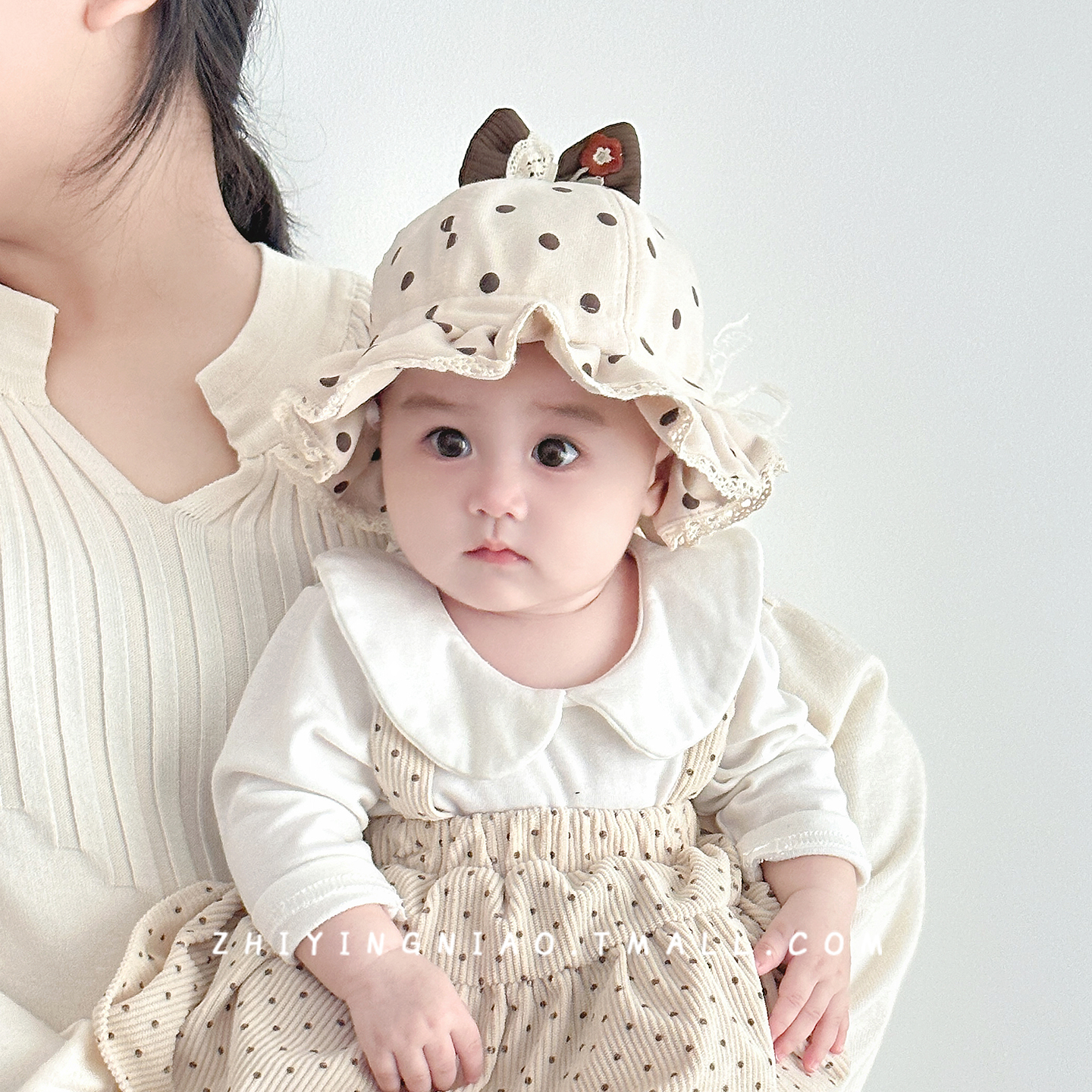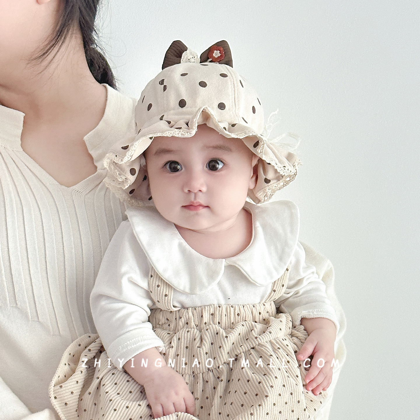 婴儿帽子春秋季 渔夫帽可爱甜美女孩防晒遮阳帽新生小月龄宝宝盆帽