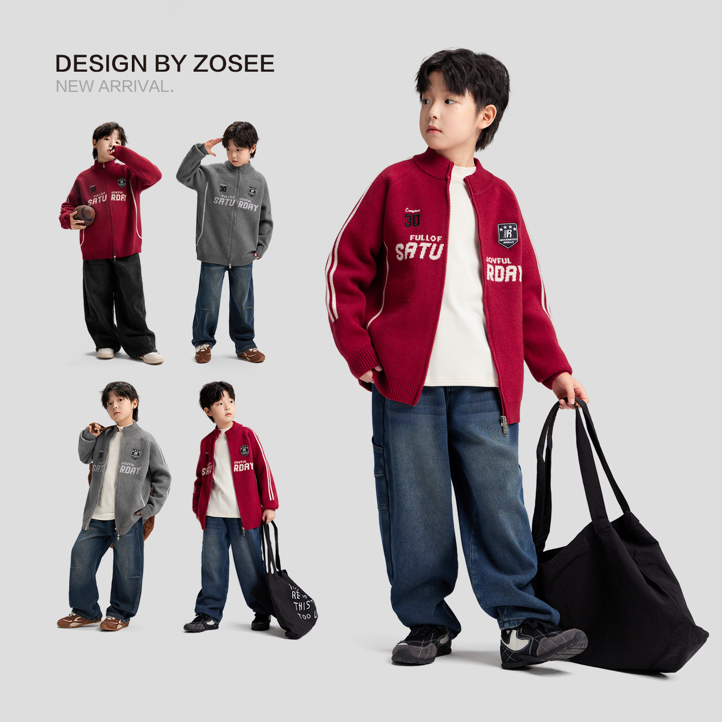 大童冬装 儿童红色洋气针织开衫 男童毛衣外套秋冬2025新款 左西童装