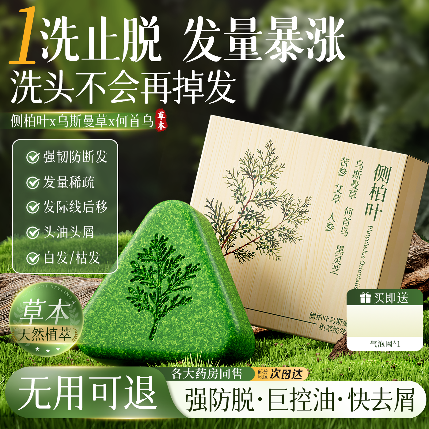 侧柏叶洗发皂新疆乌斯曼草何首乌中药手工米诺皂固发防断控油去屑