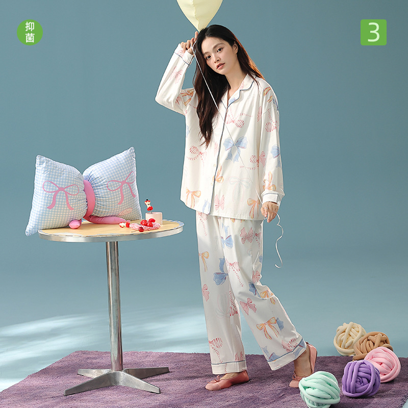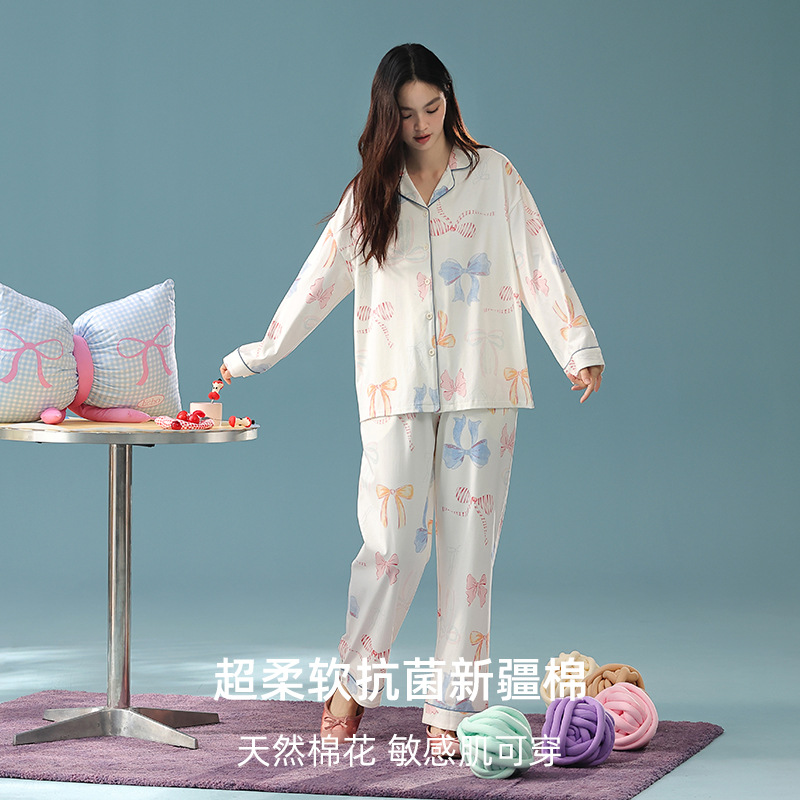 长袖 简约舒适家居服套装 长裤 夏季 可外穿 2025新款 纯棉睡衣女春秋季