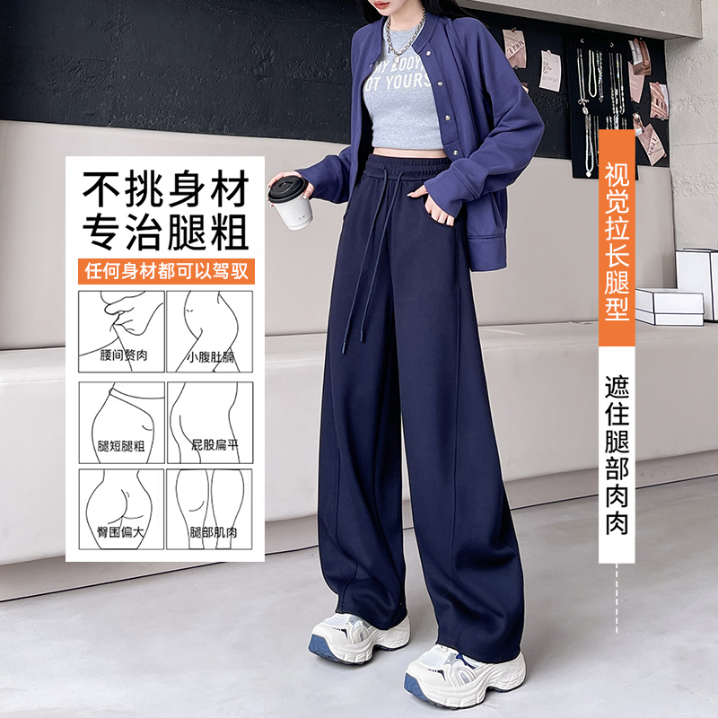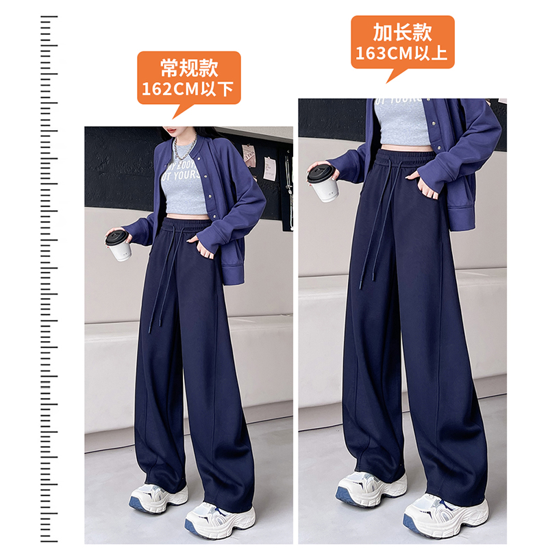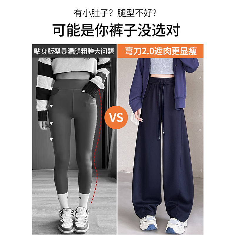 高腰弯刀裤 藏青色卫裤 2025新款 高个子加长宽松休闲运动裤 女春秋款