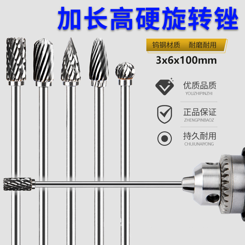 加长钨钢磨头硬质合金旋转锉刀打磨铣刀钻头金属金钢挫刀洗刀工具