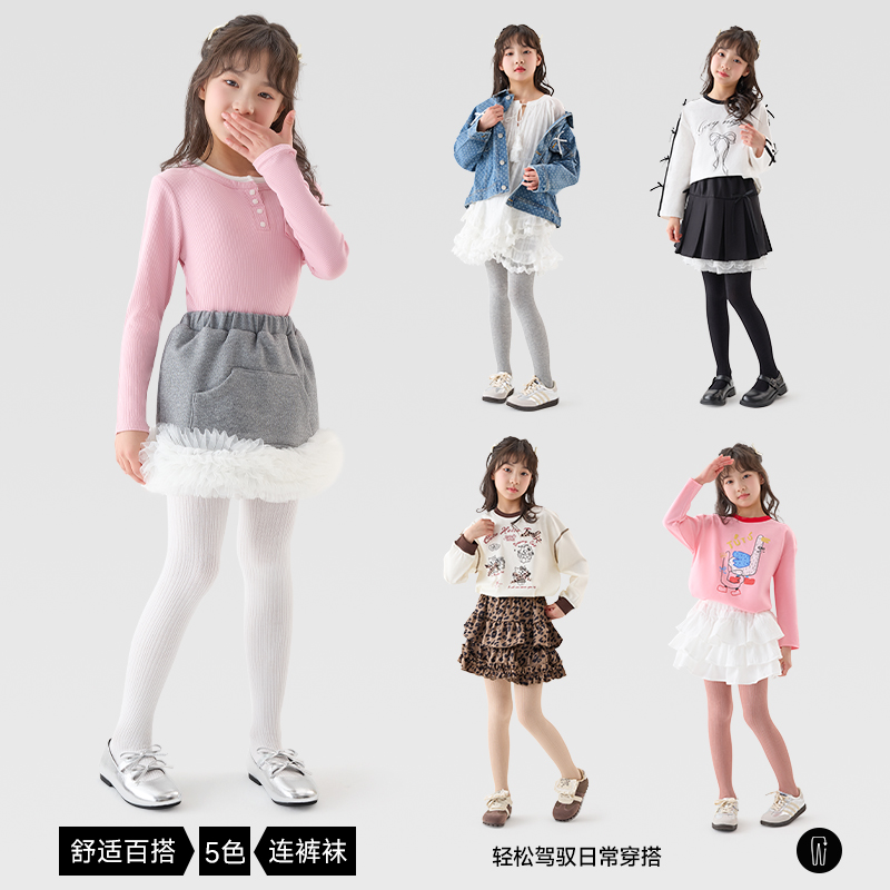 黑色儿童打底裤 小女孩白色打底棉袜宝宝连脚秋季 袜春秋款 女童连裤
