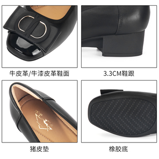 子 绝美黑色漆皮职业浅口单鞋 达芙妮红底高跟鞋 女细跟秋冬2025新款