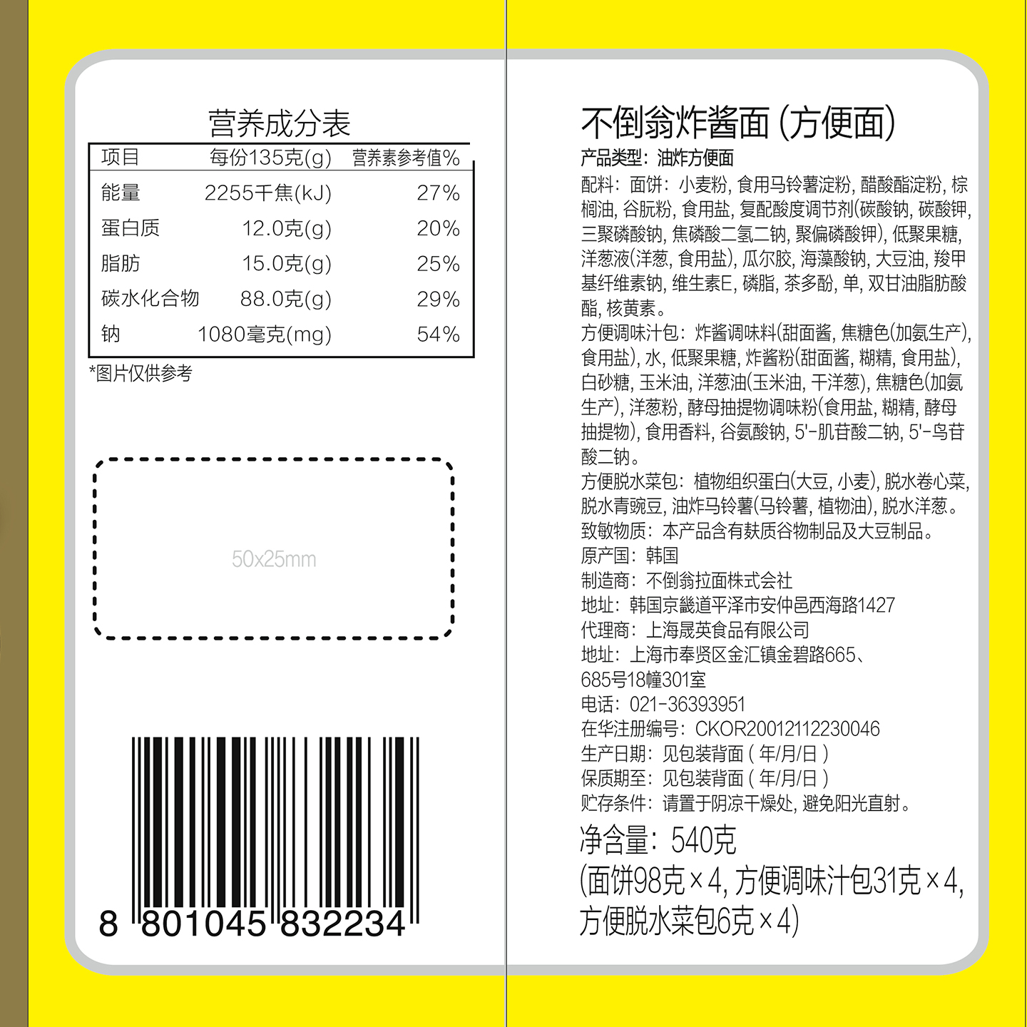 不倒翁炸酱面韩国进口拉面懒人速食泡面夜宵方便面劲道韩式 拉面