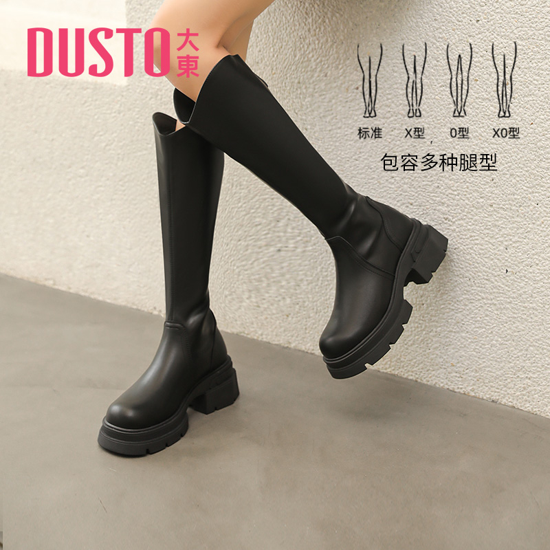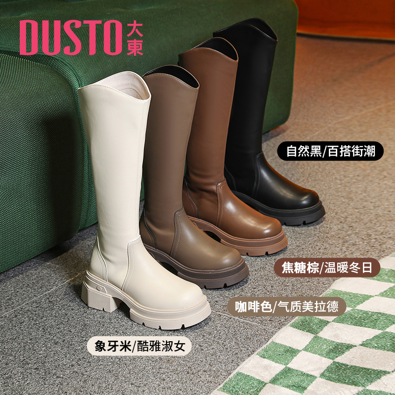 大东官方厚底长筒靴女2025新款 早秋美拉德靴子棕色长靴高筒骑士靴