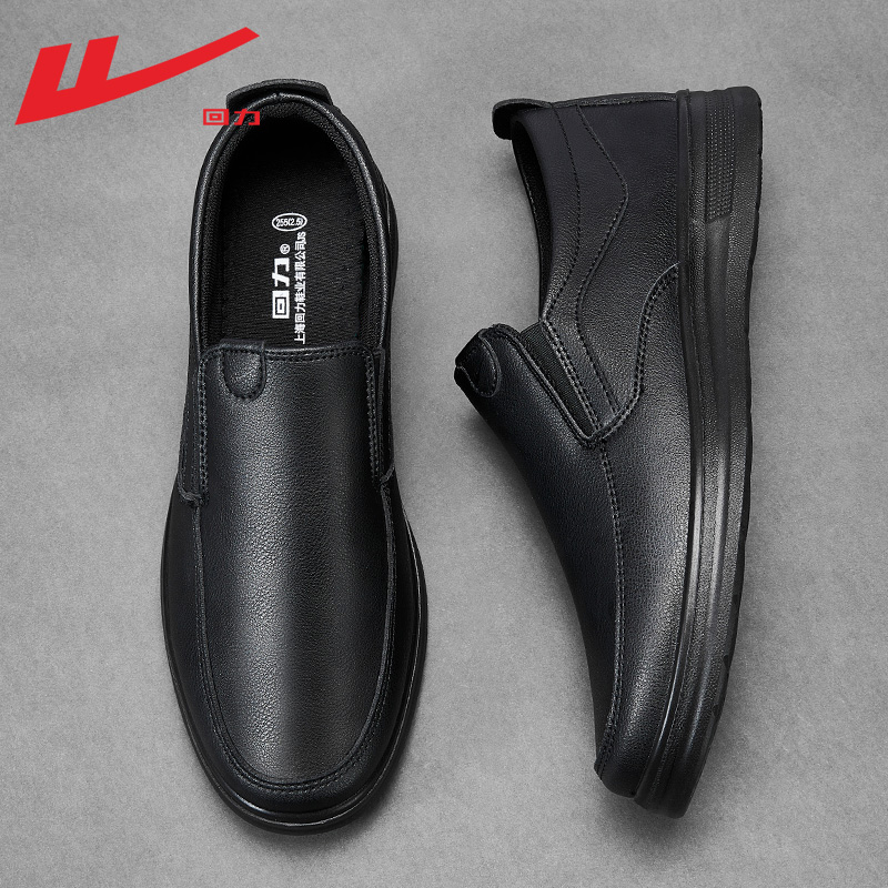 父亲中老年爸爸鞋 男士 舒适软底一脚蹬 真皮商务休闲皮鞋 意尔康男鞋