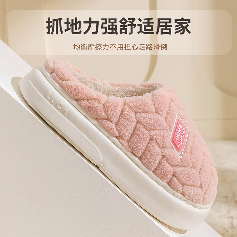 家居室内防滑加绒保暖毛拖鞋 棉拖鞋 厚底2025新款 秋冬季 男冬天 女款