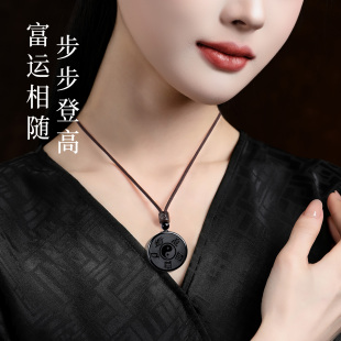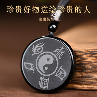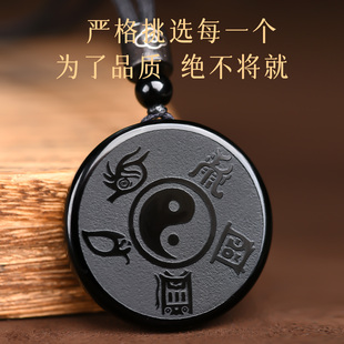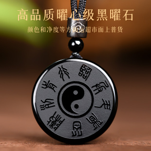 天然黑曜石五岳真形图吊坠汽车钥匙扣手机链挂件男女项链黑色补水