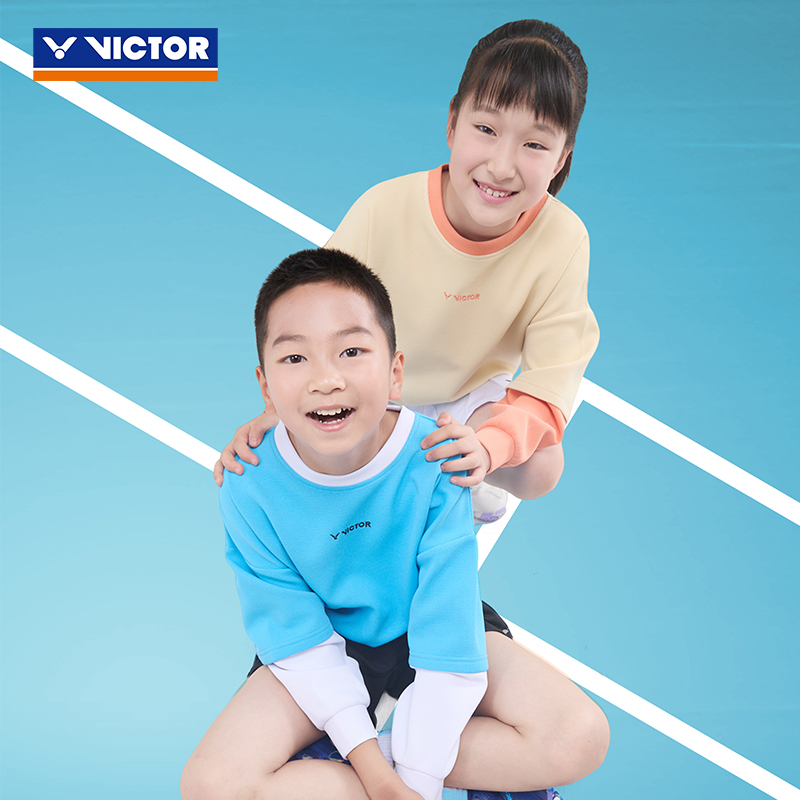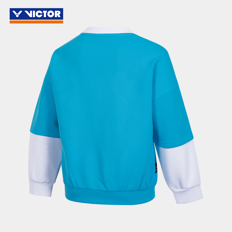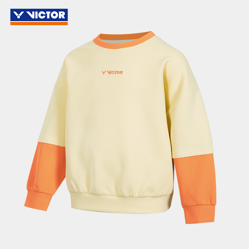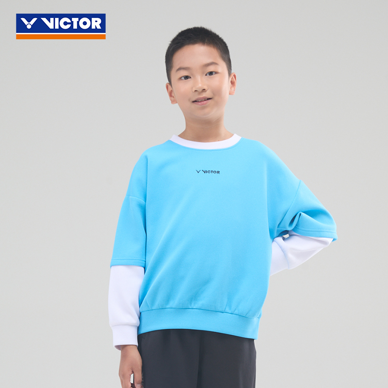 57029 针织儿童圆领卫衣T VICTOR 威克多官方撞色假两件羽毛球长袖