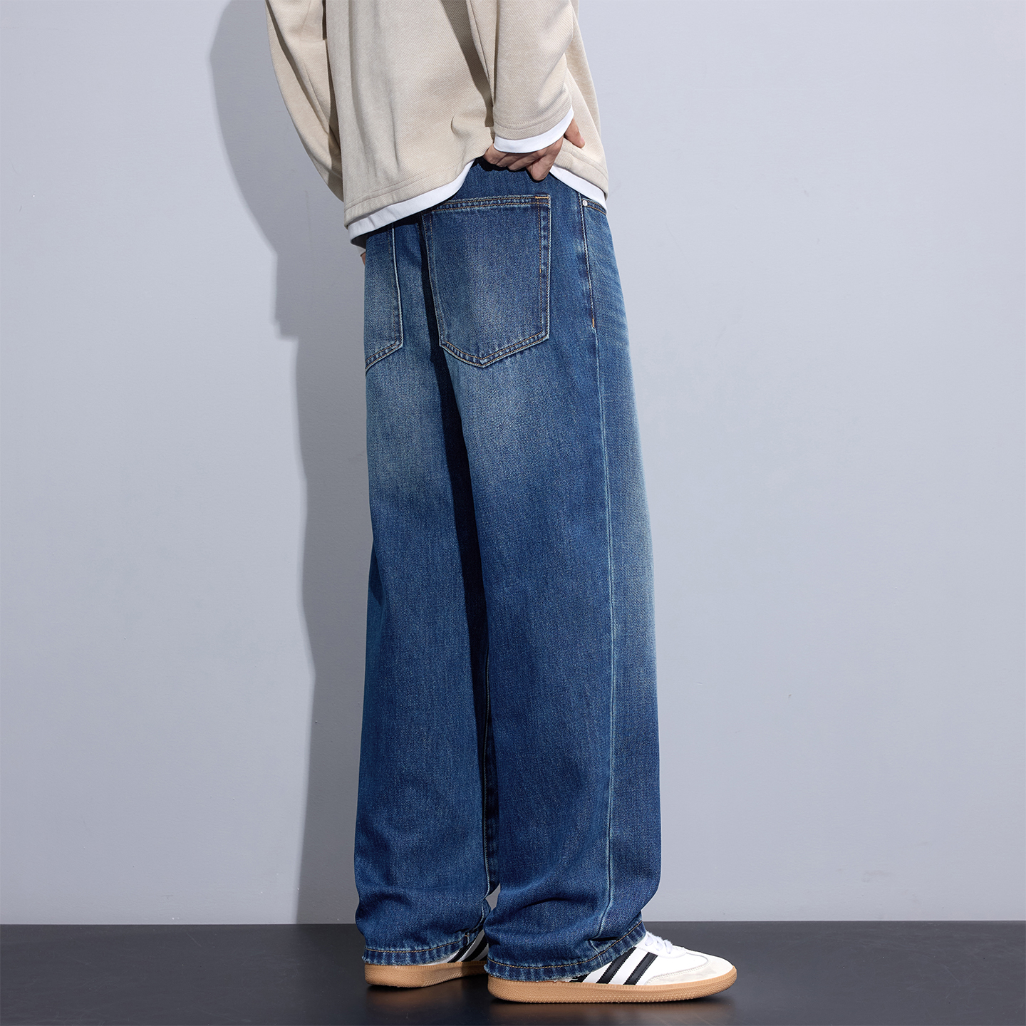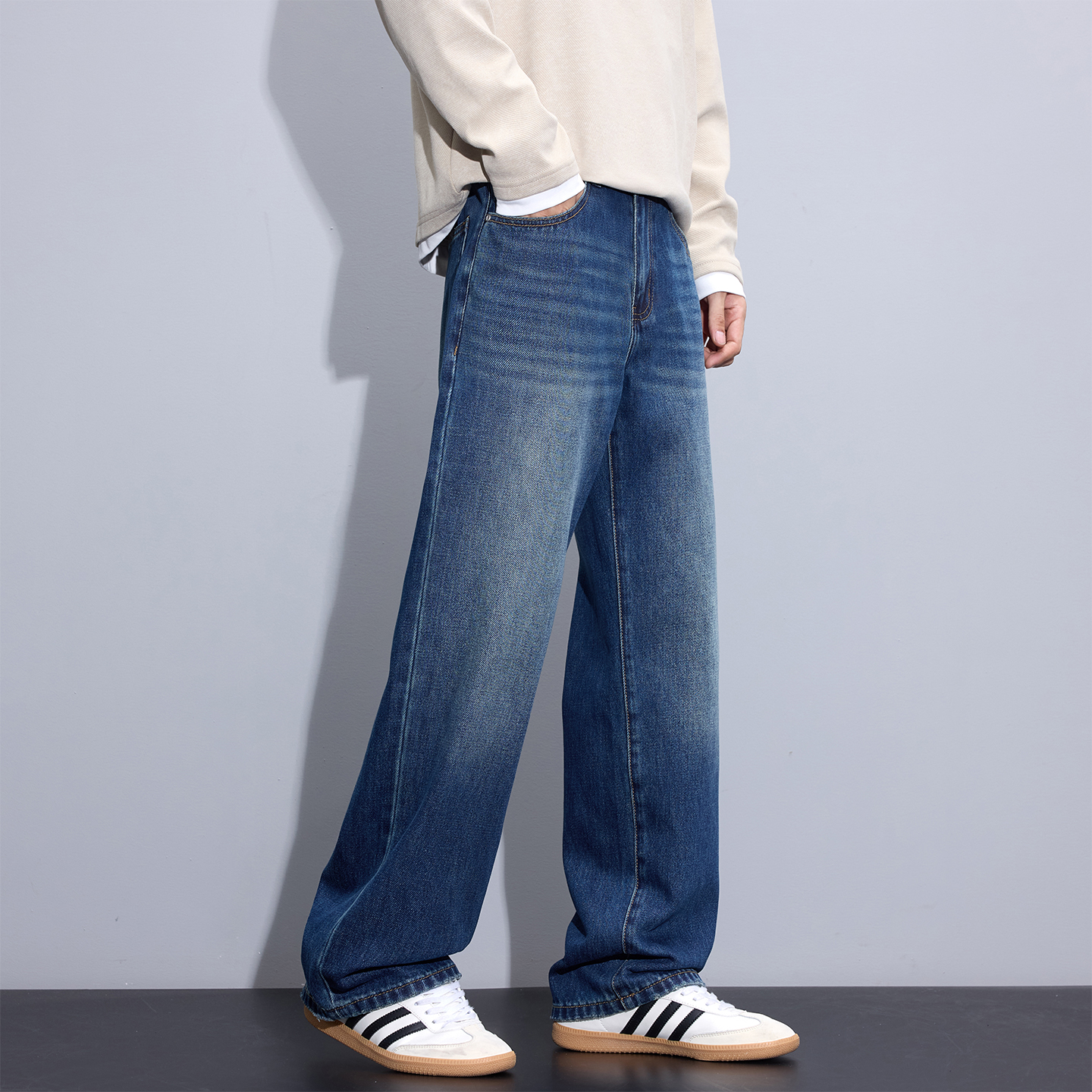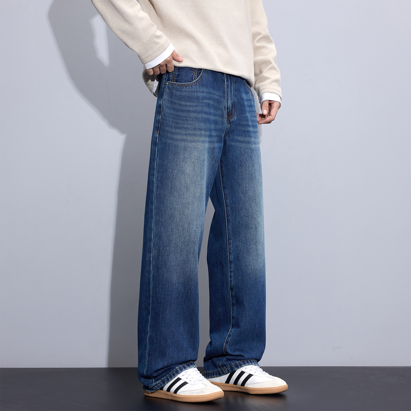 男 秋冬微锥直筒休闲裤 雪花肌石磨洗牛仔裤 男春秋复古宽松小脚男裤