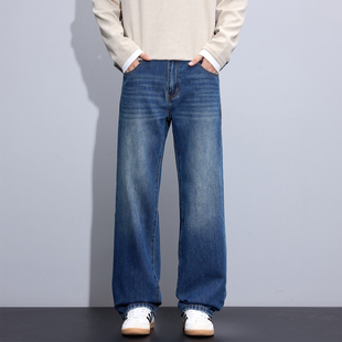 显瘦宽松直筒牛仔裤 王家有鱼秋季 2025百搭修身 复古蓝阔腿裤 女 新款