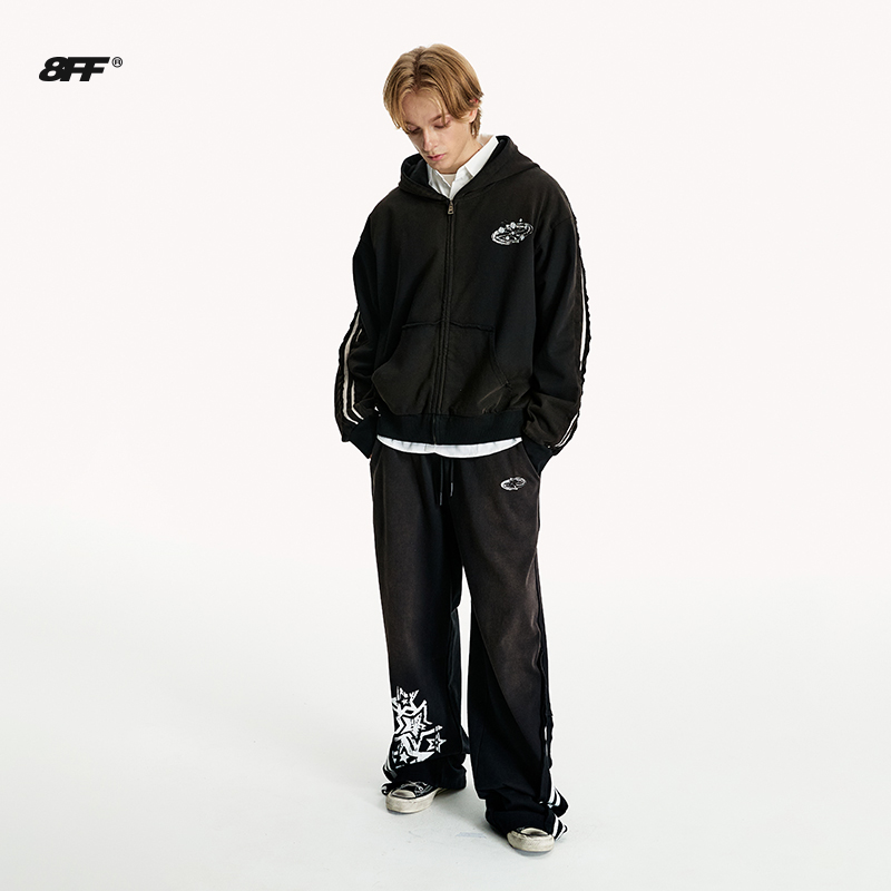 秋冬美式 印花上衣服 潮牌街头设计感小众圆领宽松套头卫衣男女个性