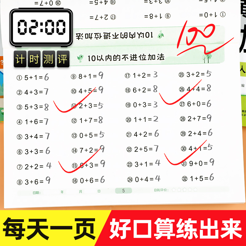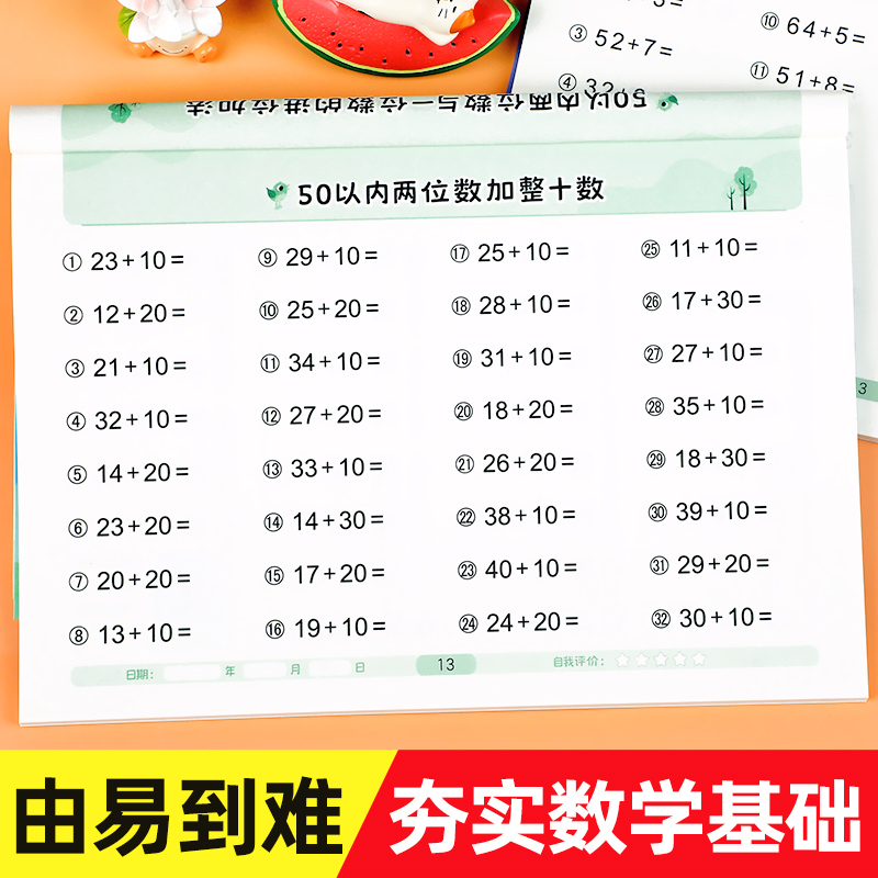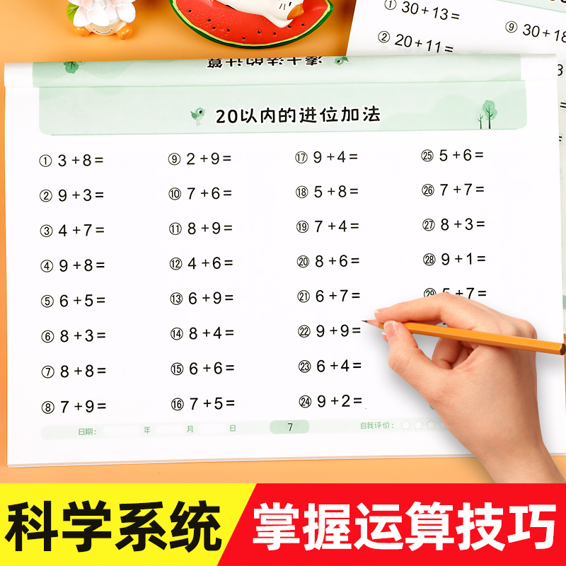 100以内 20十以内加减法口算题卡50 加减法凑十法借十法 幼儿园大班幼儿练习册全套口算天天练每日一练10 幼小衔接数学专项训练
