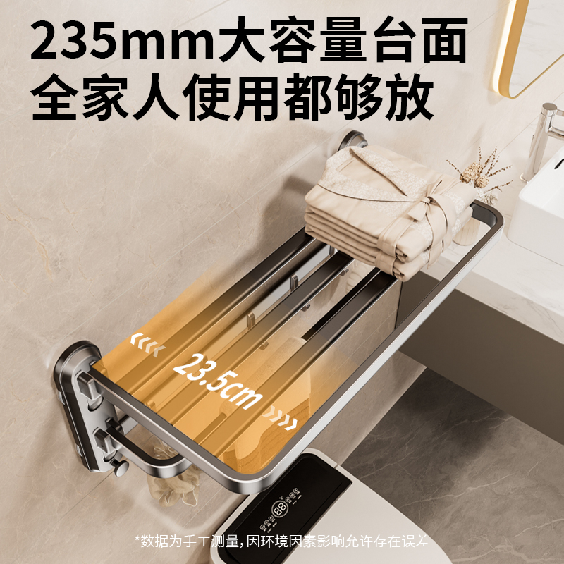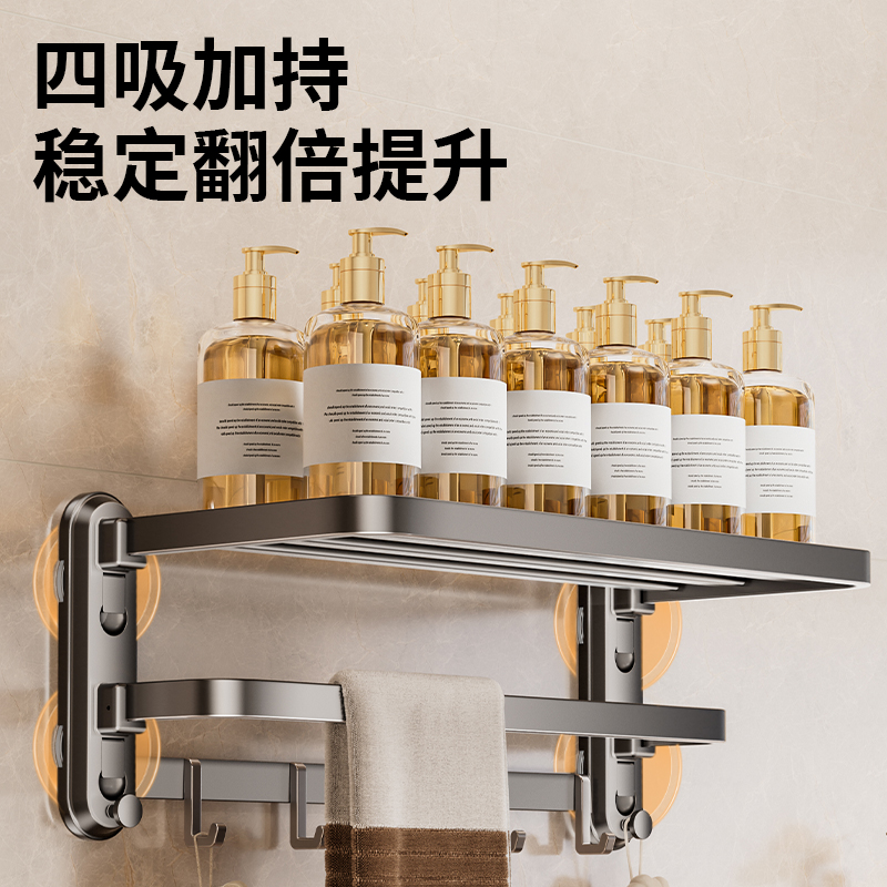 吸盘毛巾架卫生间免打孔壁挂式 可拆卸双折叠浴巾置物架浴室收纳架