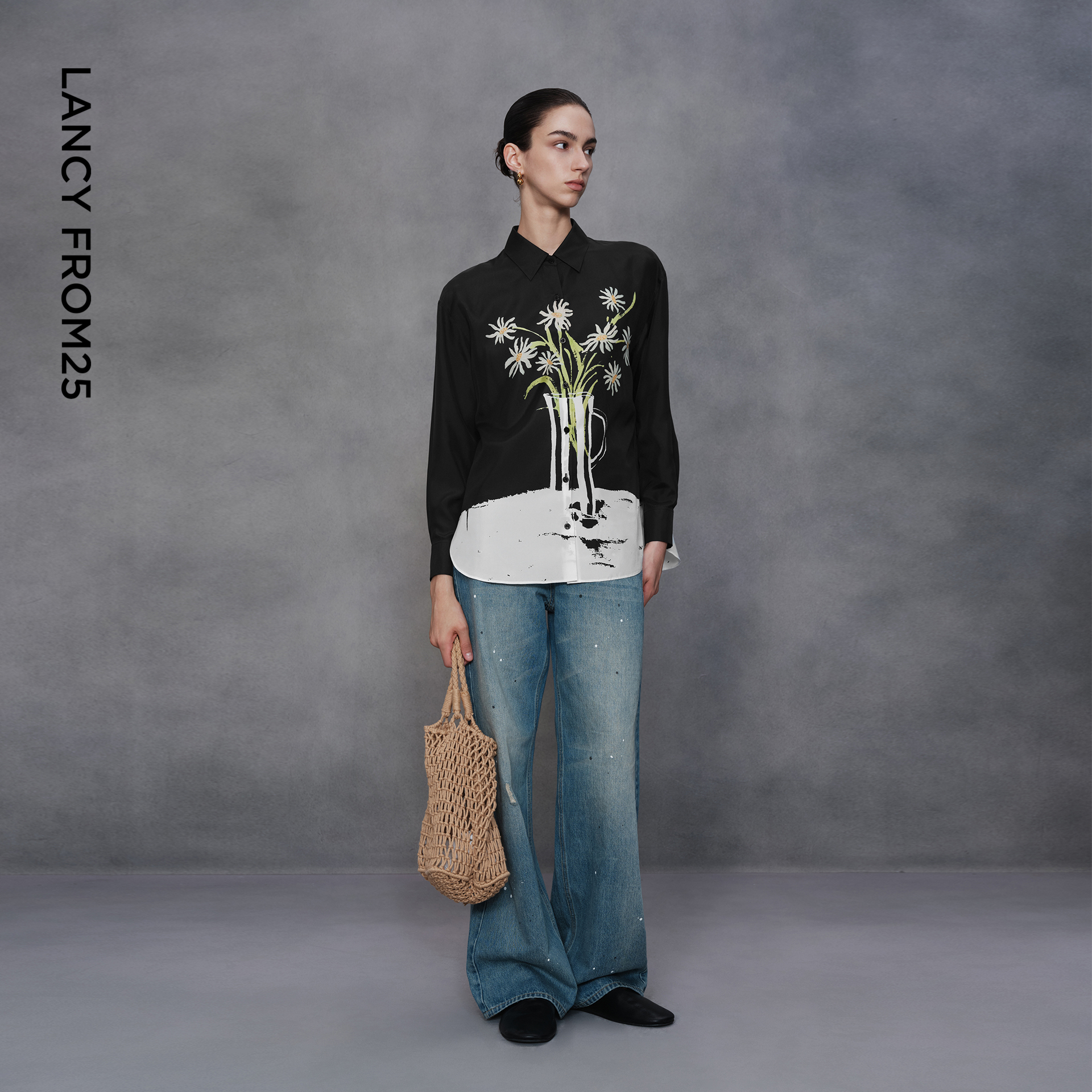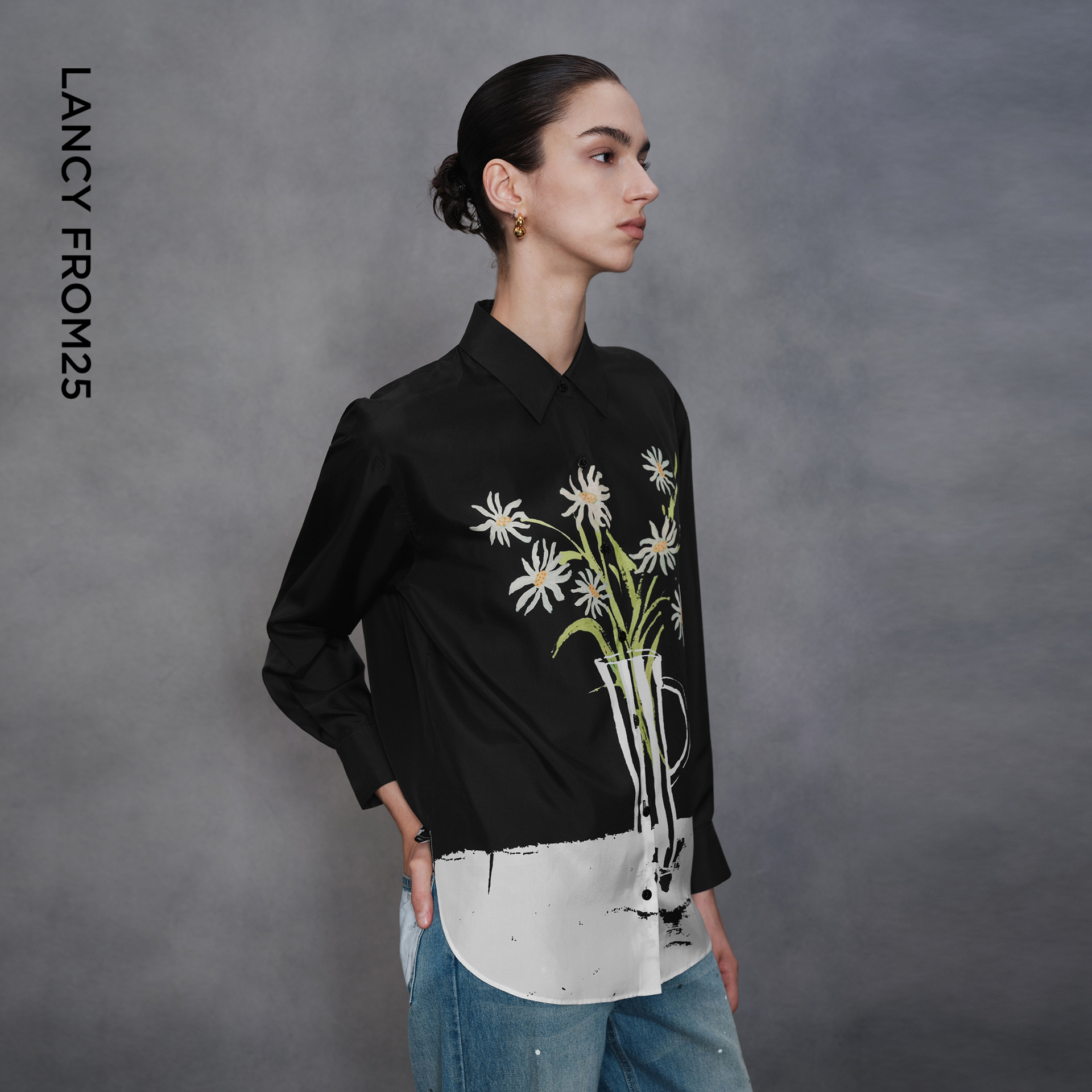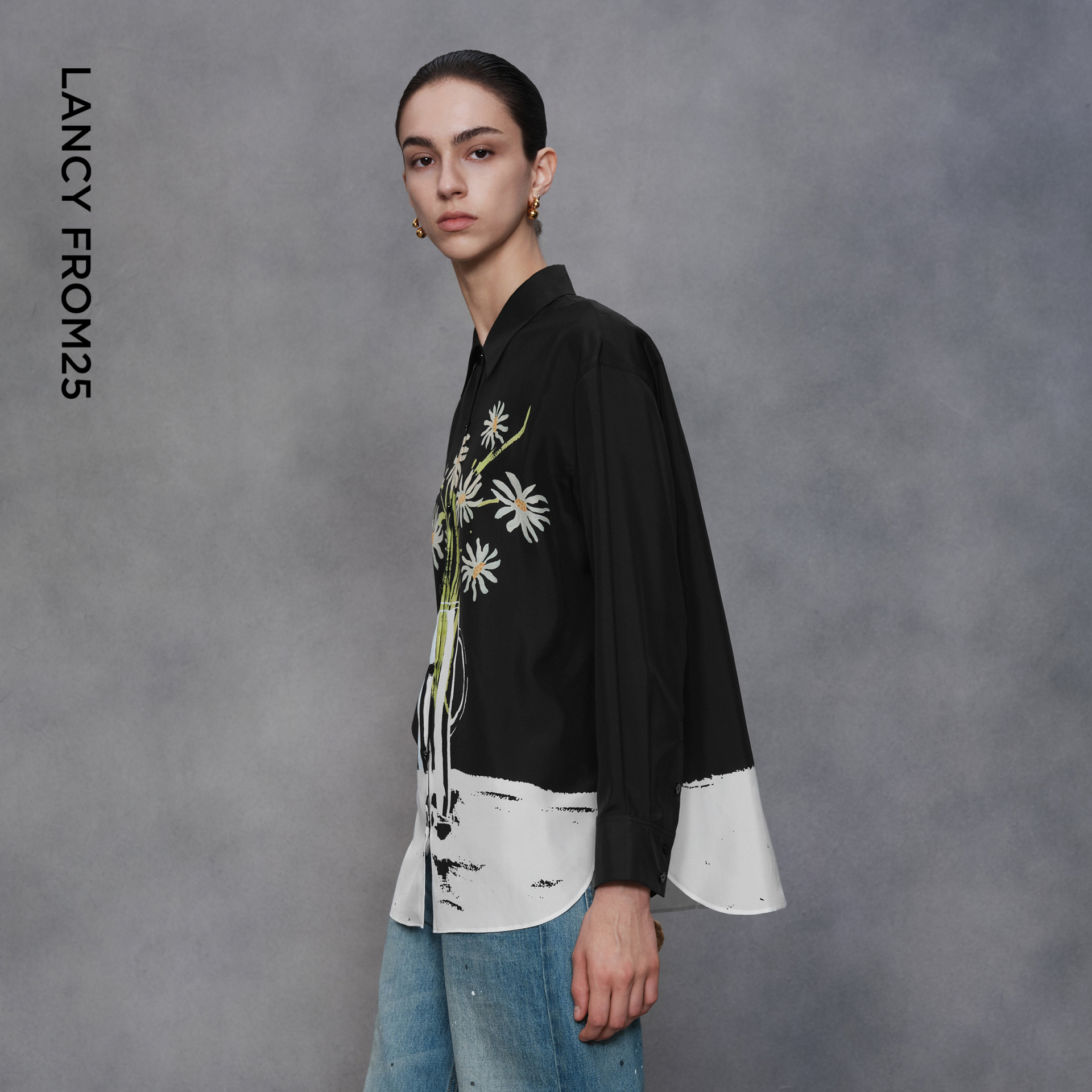 真丝印花衬衫 朗姿法式 艺术家联名 桑蚕丝气质高级感 秀场同款