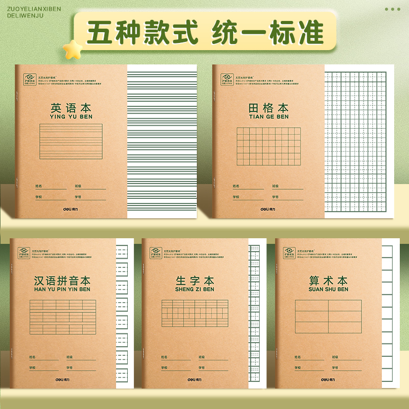 得力英语本英语练习本作业本小学生专用36K四线三格三年级加厚本子拼音本田字格本数学本小学护汉语护眼学校