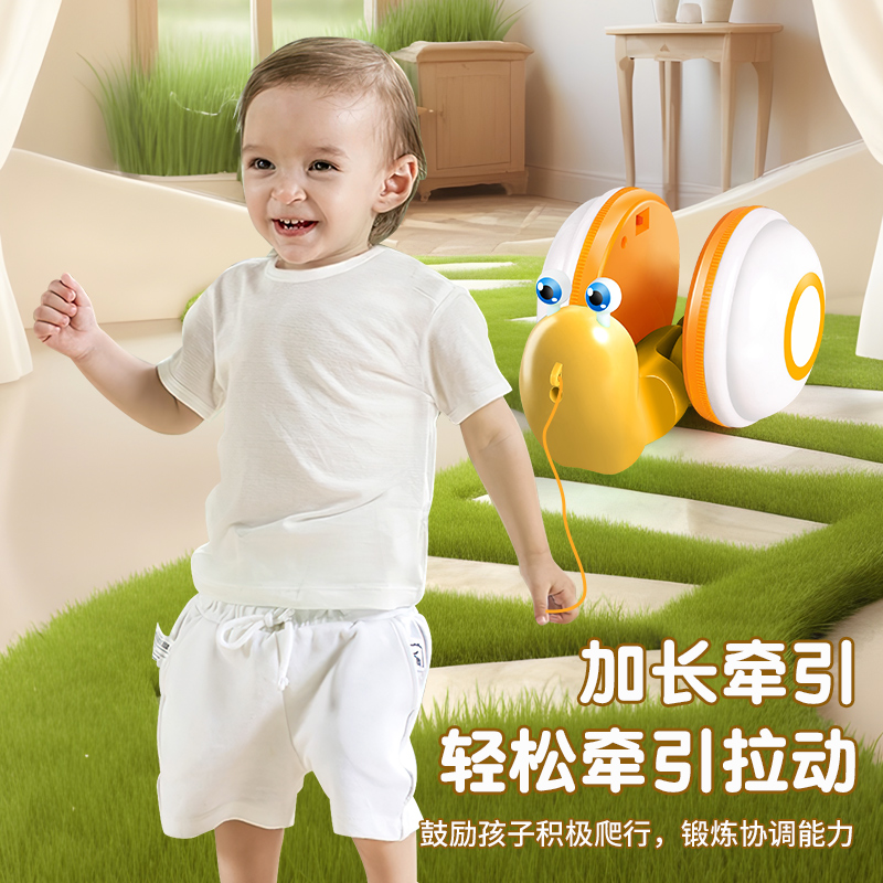 牵绳蜗牛爬行儿童玩具电动发光益智小孩1一2岁3宝宝女孩6礼物牵引